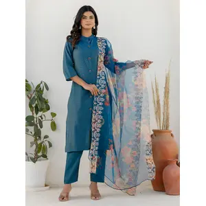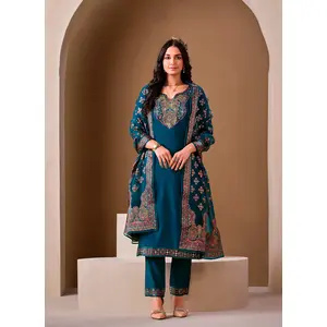 Teal Blue Color Viscose Silk Fabric...