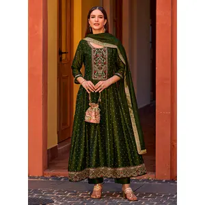Mahendi Color Vichitra Silk Fabric...
