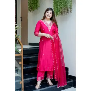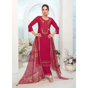 Pink Color Chinon Fabric Heavy...