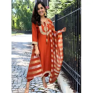 Red Color Chanderi Fabric Designer...