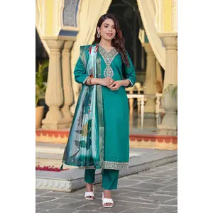 Teal Blue Color Viscose Chanderi...