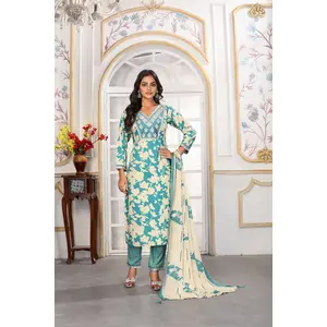Sea Green Color Rayon Fabric Designer...