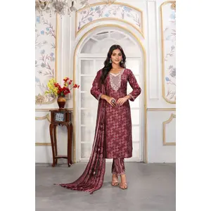 Burgundy Color Viscose Chanderi...