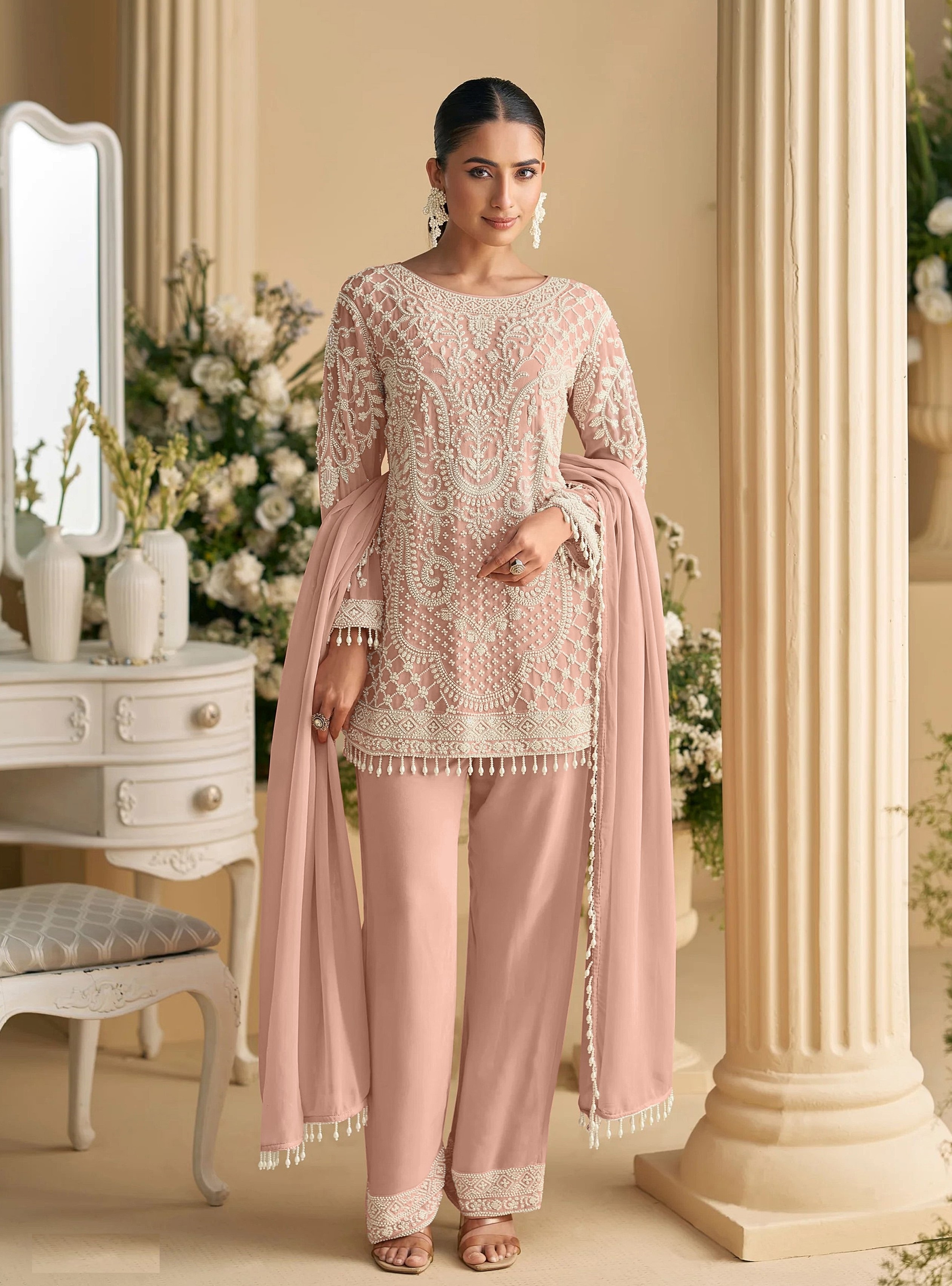 Peach Color Rich Sophisticated Looks Ethnic Ceremonial Suit