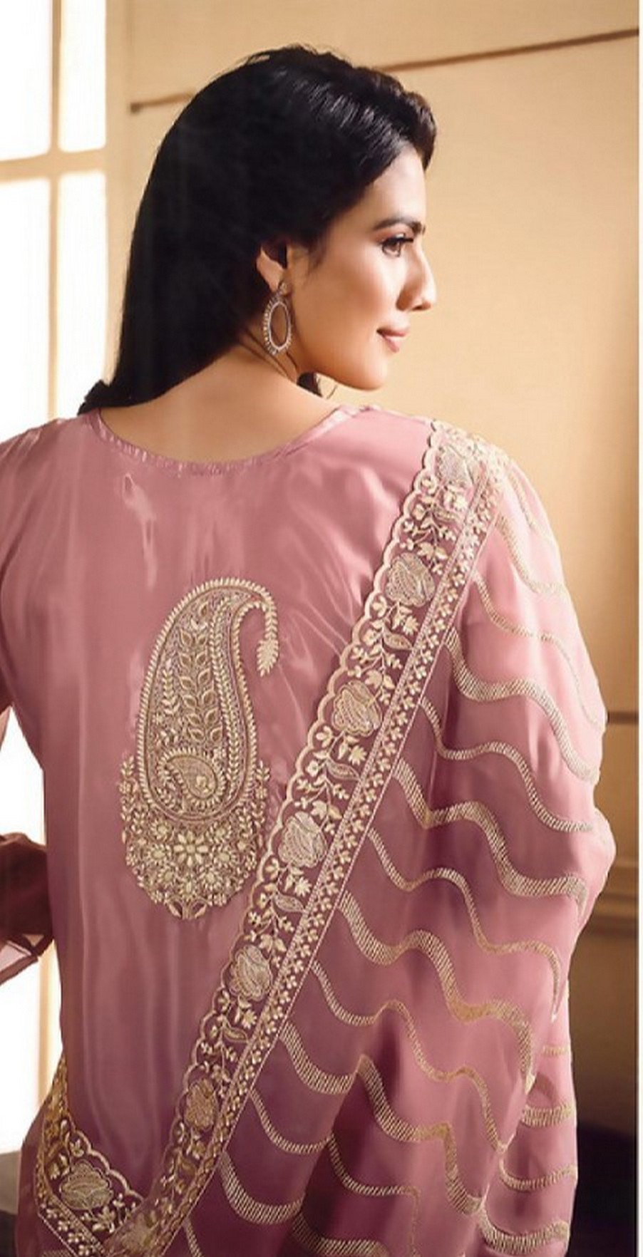 Pink Color Elegant Organza Fabric Designer Embroidered Suit
