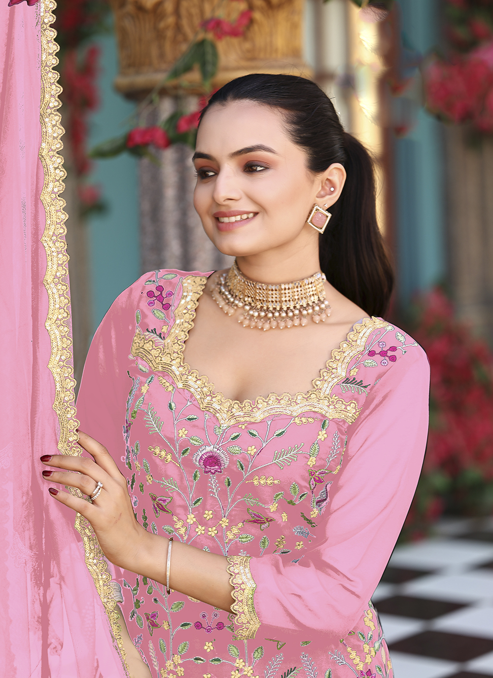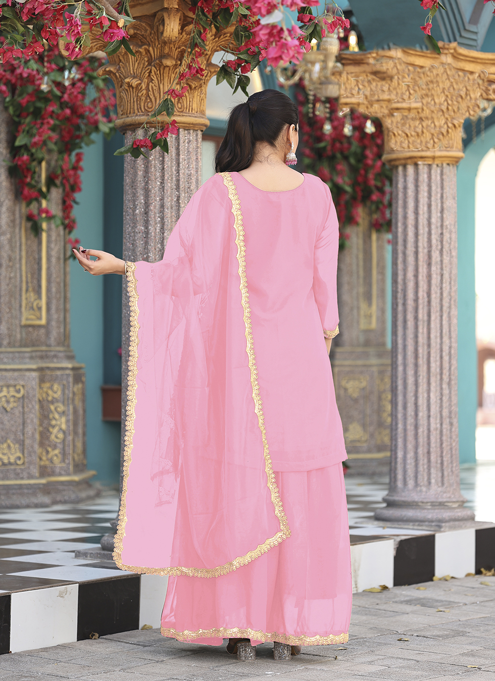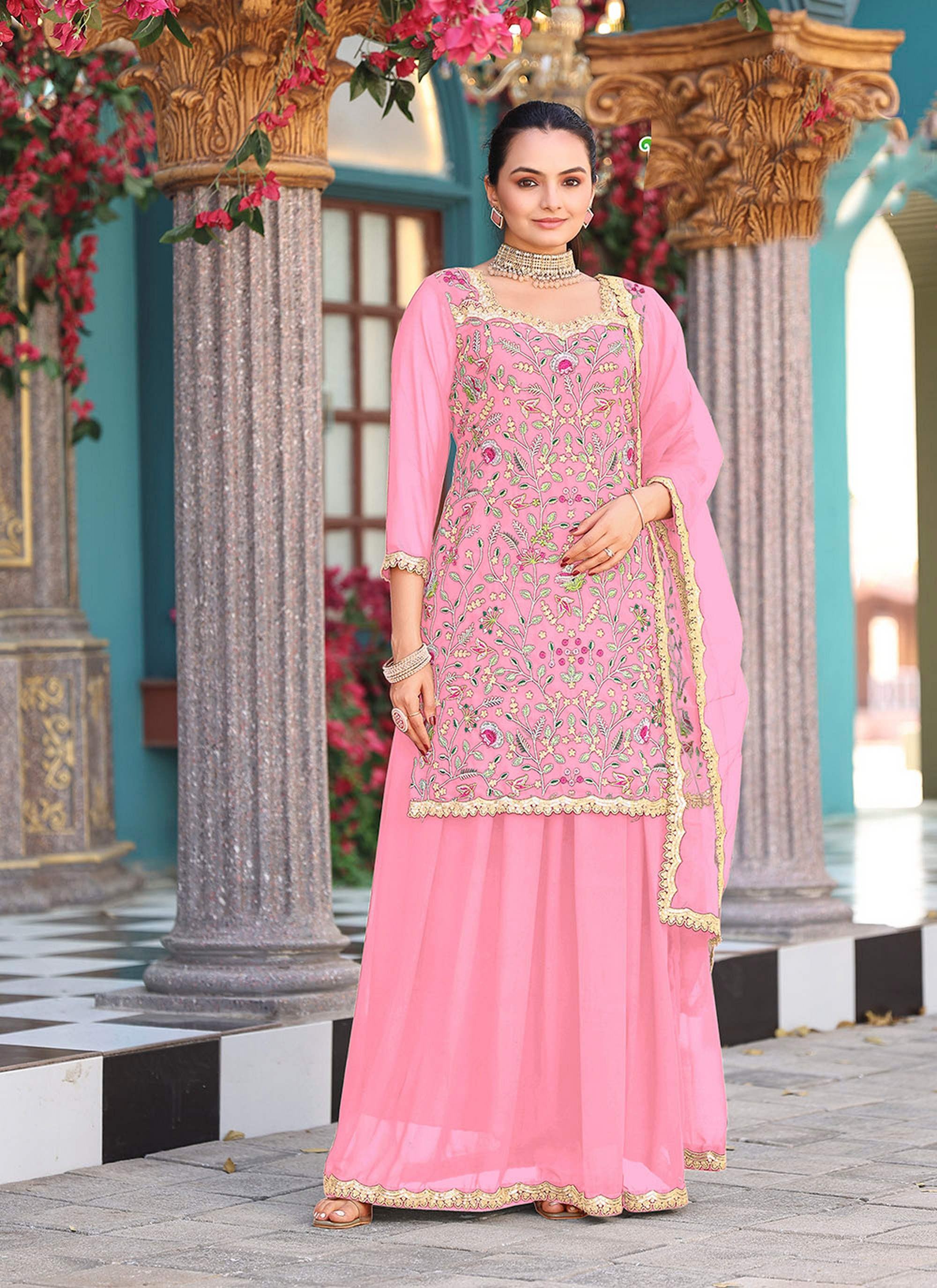 Pink Color Graceful Heavy Embroidered Palazzo Dress For Wedding Looks