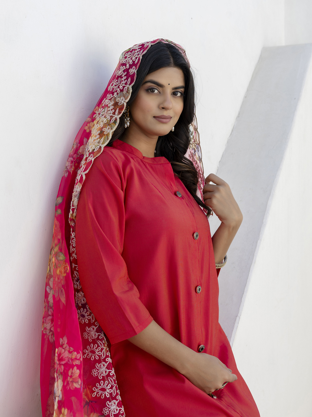 Pink Color Shimmer Silk Fabric Designer Embroidery Work Formally Ethnic Readymade Kurta Set