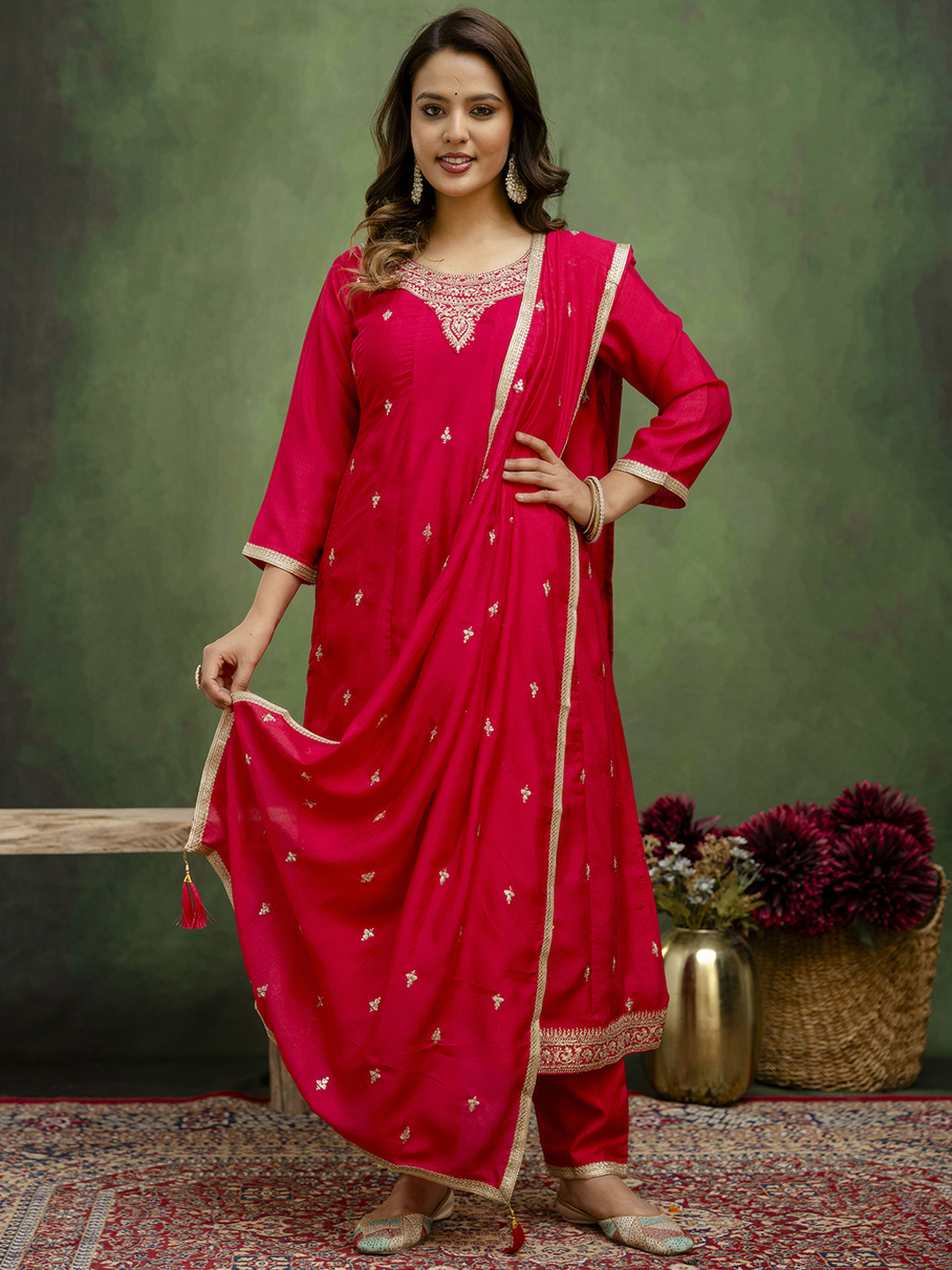 Looking These Beautiful Readymade Suits With Dupatta.These Suit is Fabricated On Top Are Silk Blend And Bottom Are Silk Blend And Silk Blend Dupatta .Its Beautified With Designer Embroidery Work.