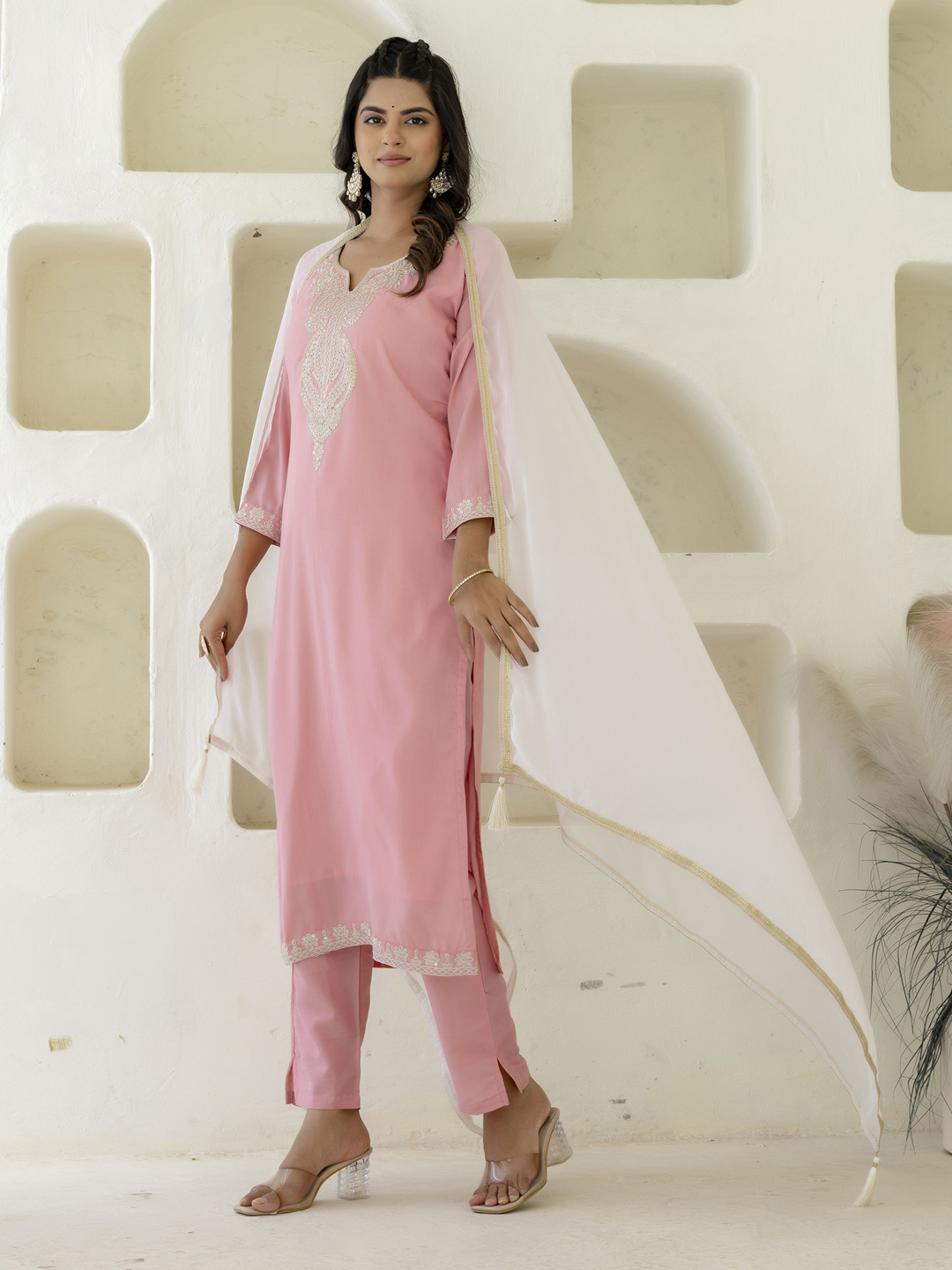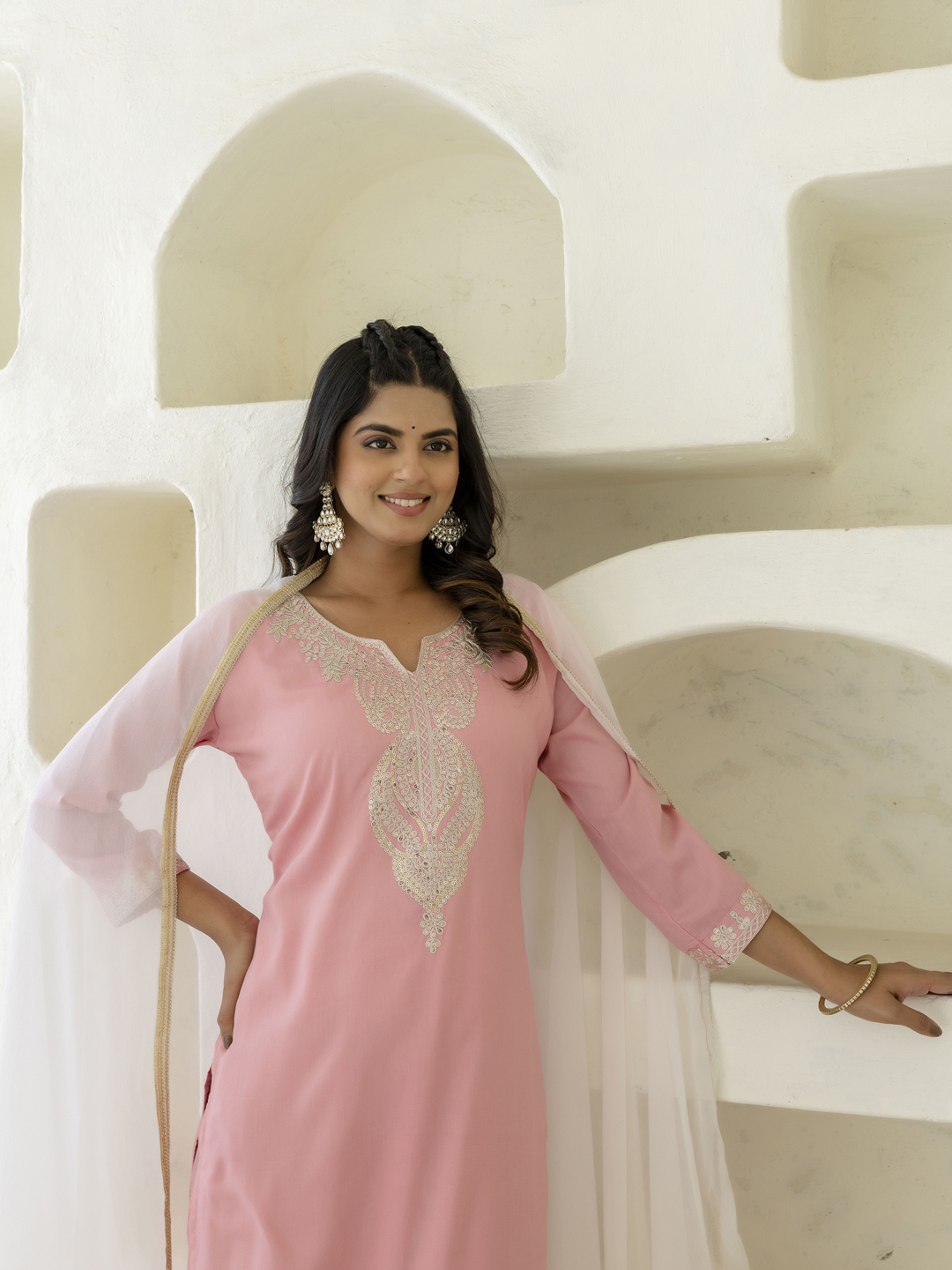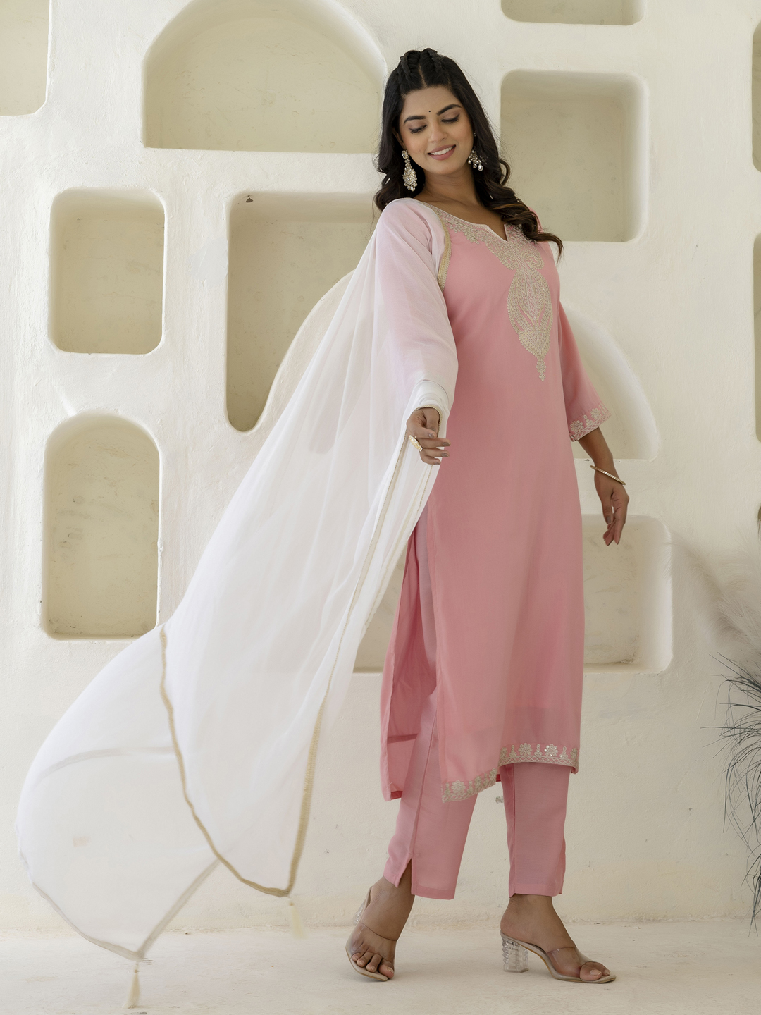 Pink Color Silk Blend Fabric Beautiful Festive Wear Readymade Kurta Set
