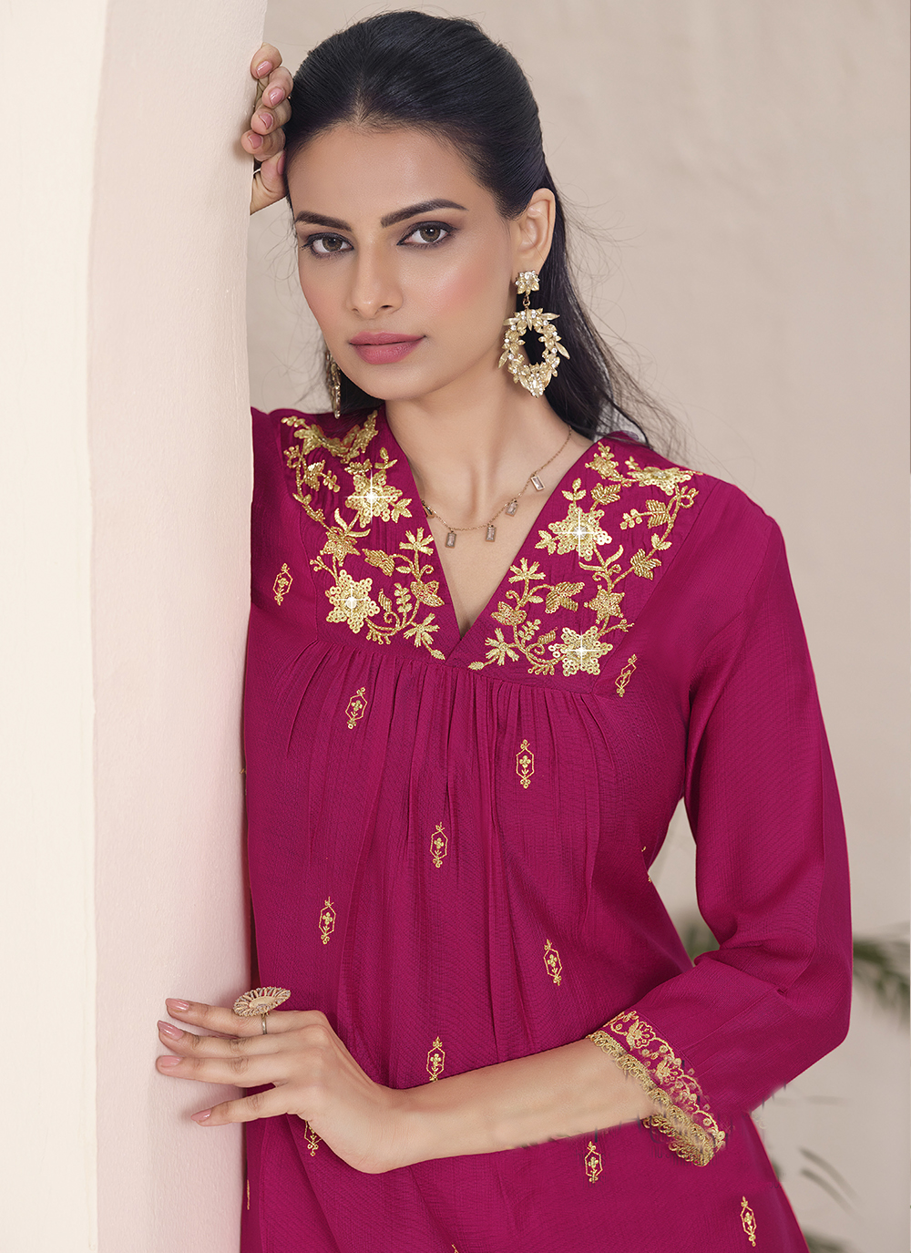 Pink Color Viscose Fabric Resham Embroidered Readymade Salwar Suit