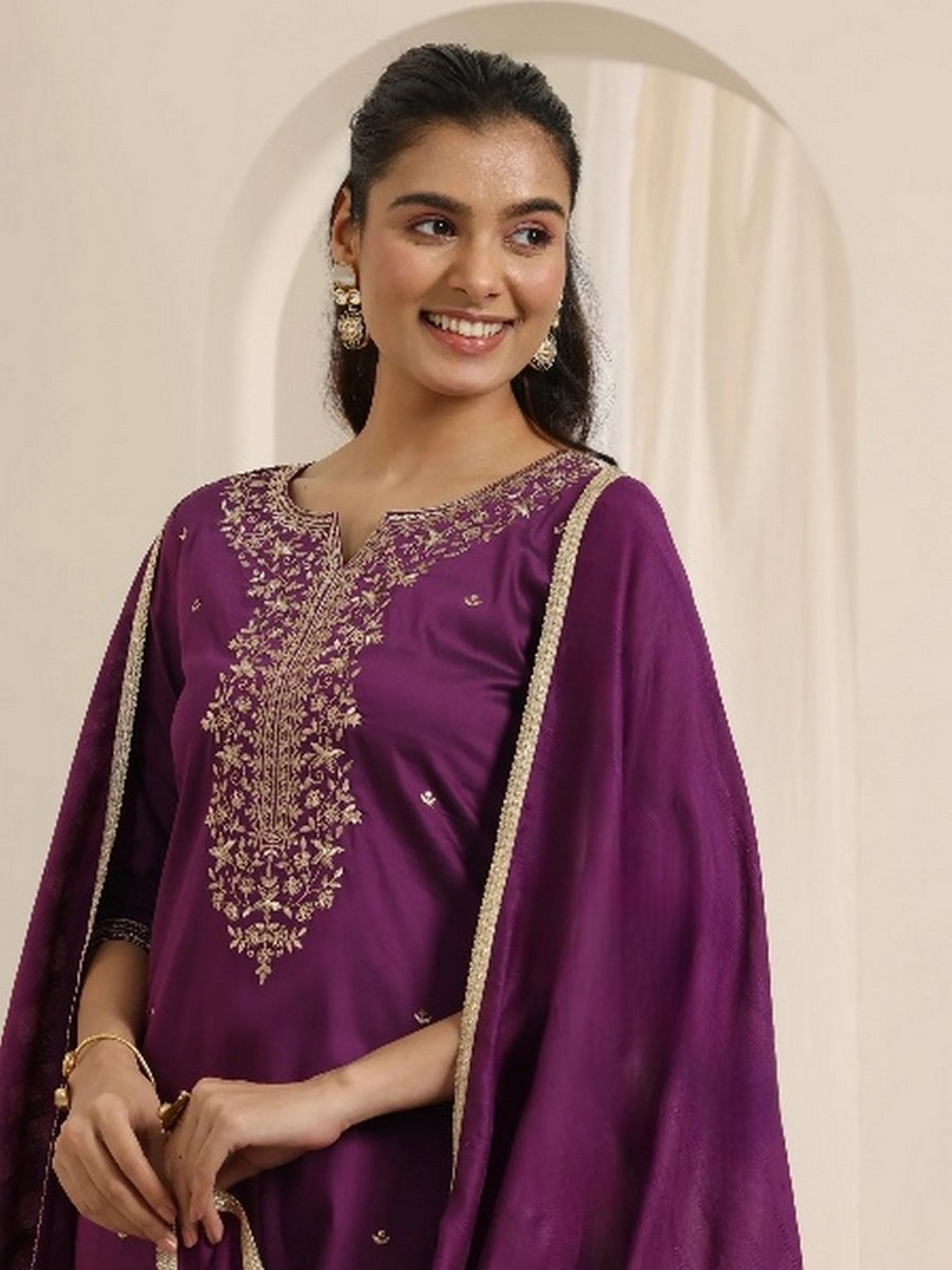 Piurple Color Viscose Chanderi Fabric Beautiful And Ethnic Readymade Kurta Set