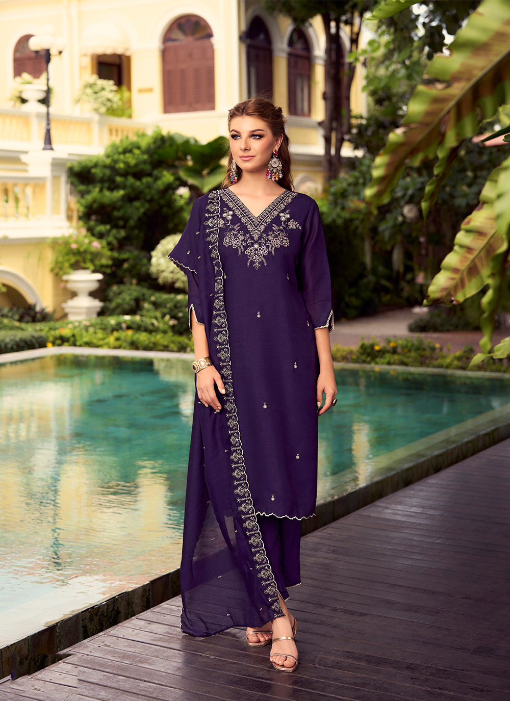 Purple Color Beautiful Ceremonial Shimmer Silk Fabric Embroidered Girls Suit