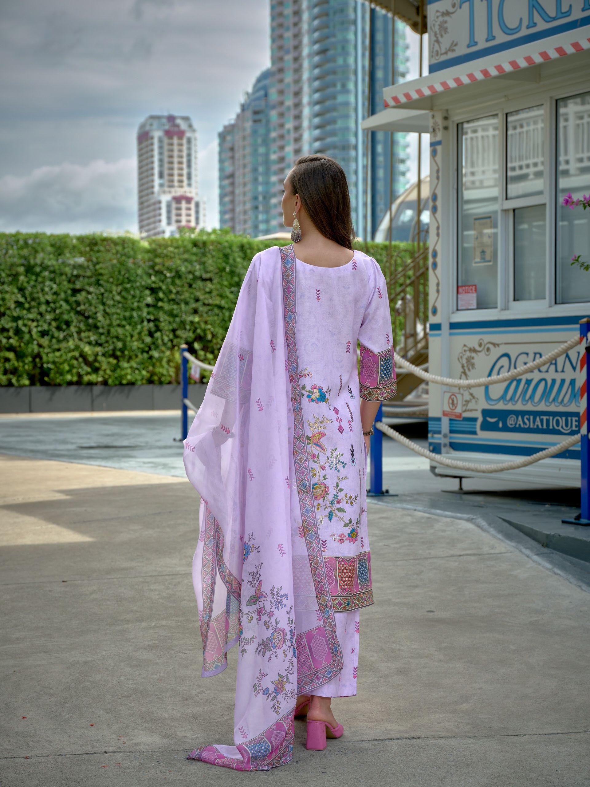 Purple Color Linen Fabric Digital Printed Ethnic Readymade Suit For Trendy Looks