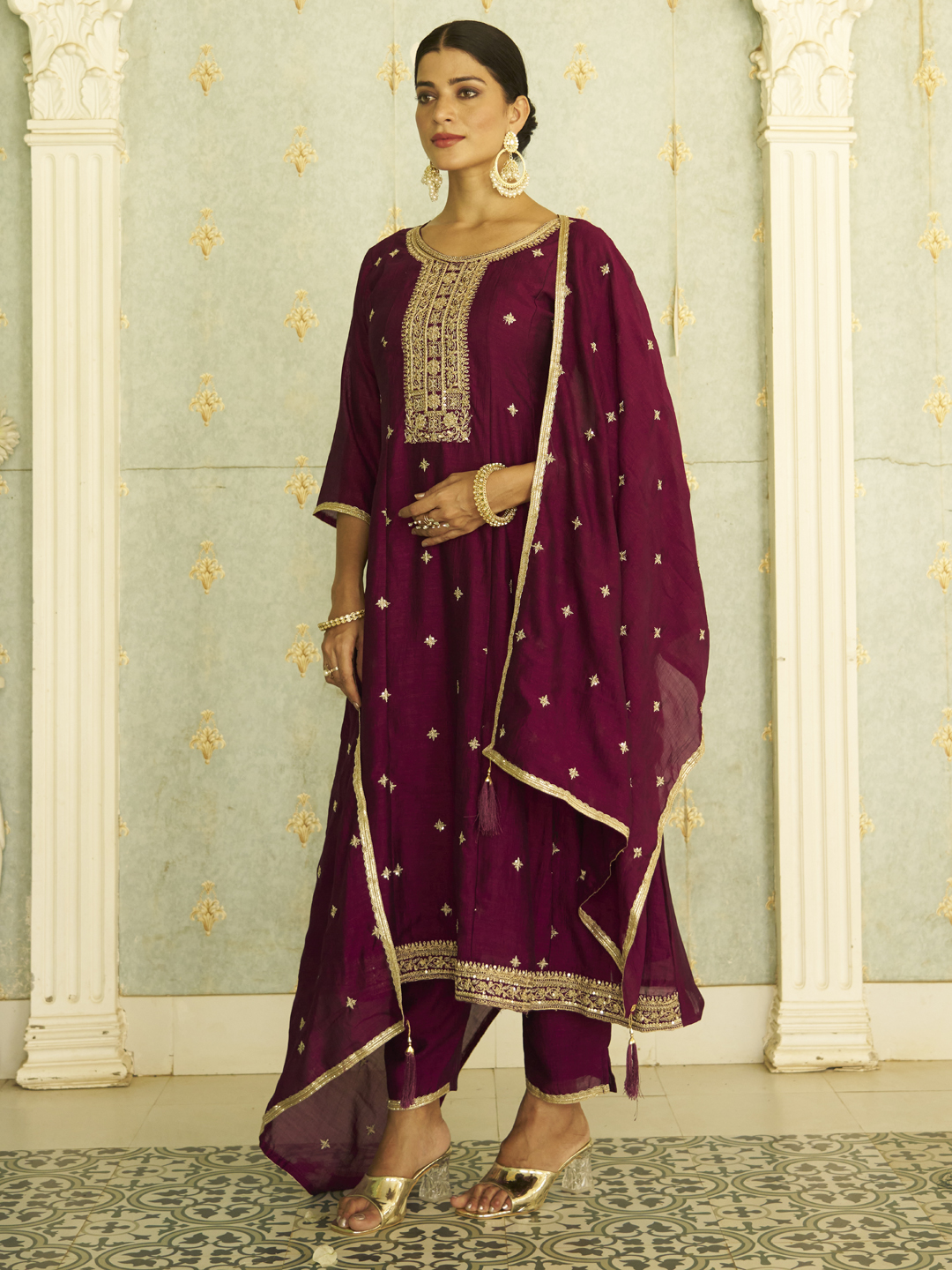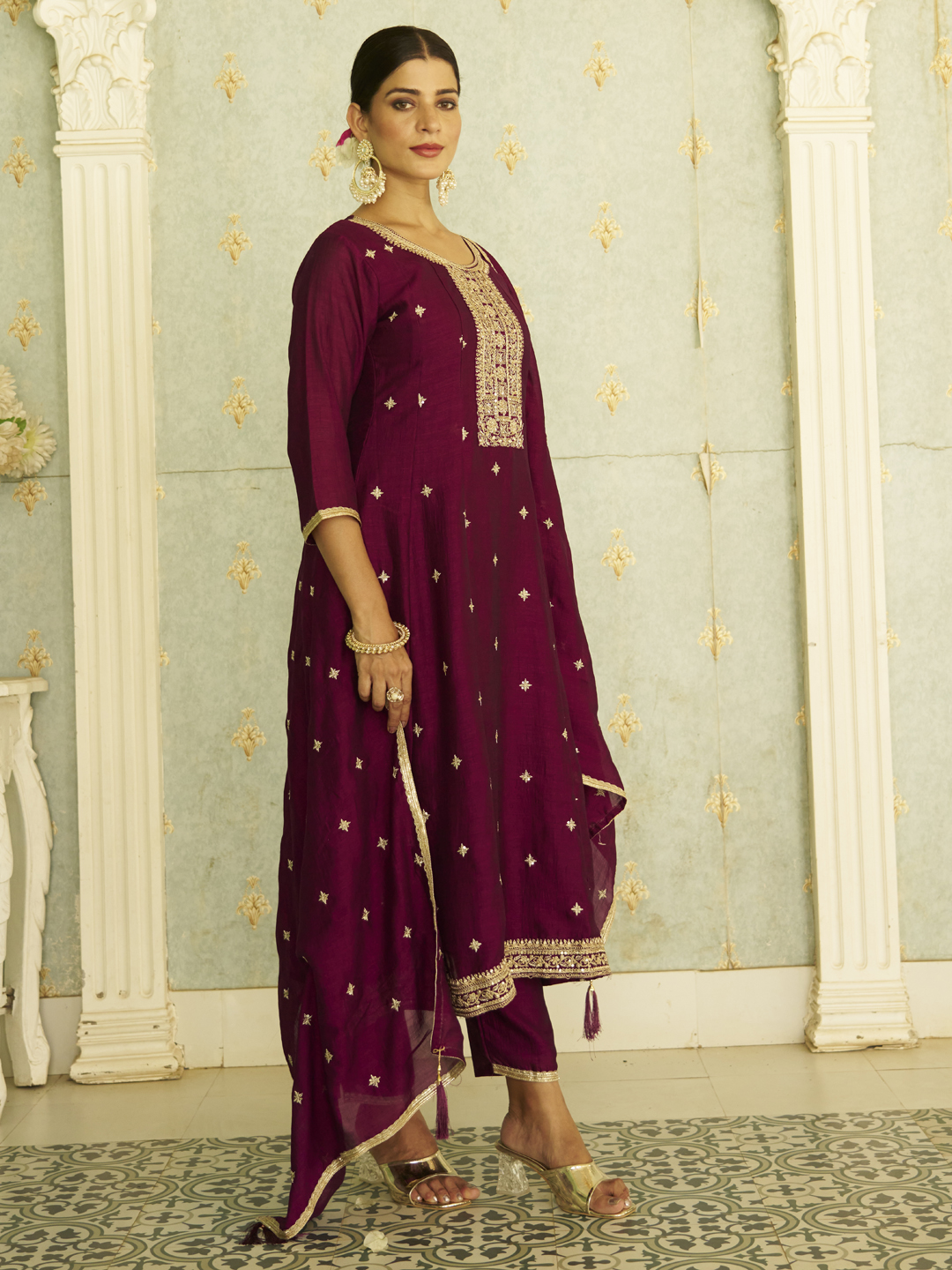 Purple Color Silk Blend Designer Embroidery Work Heavy Looks Salwar Kameez
