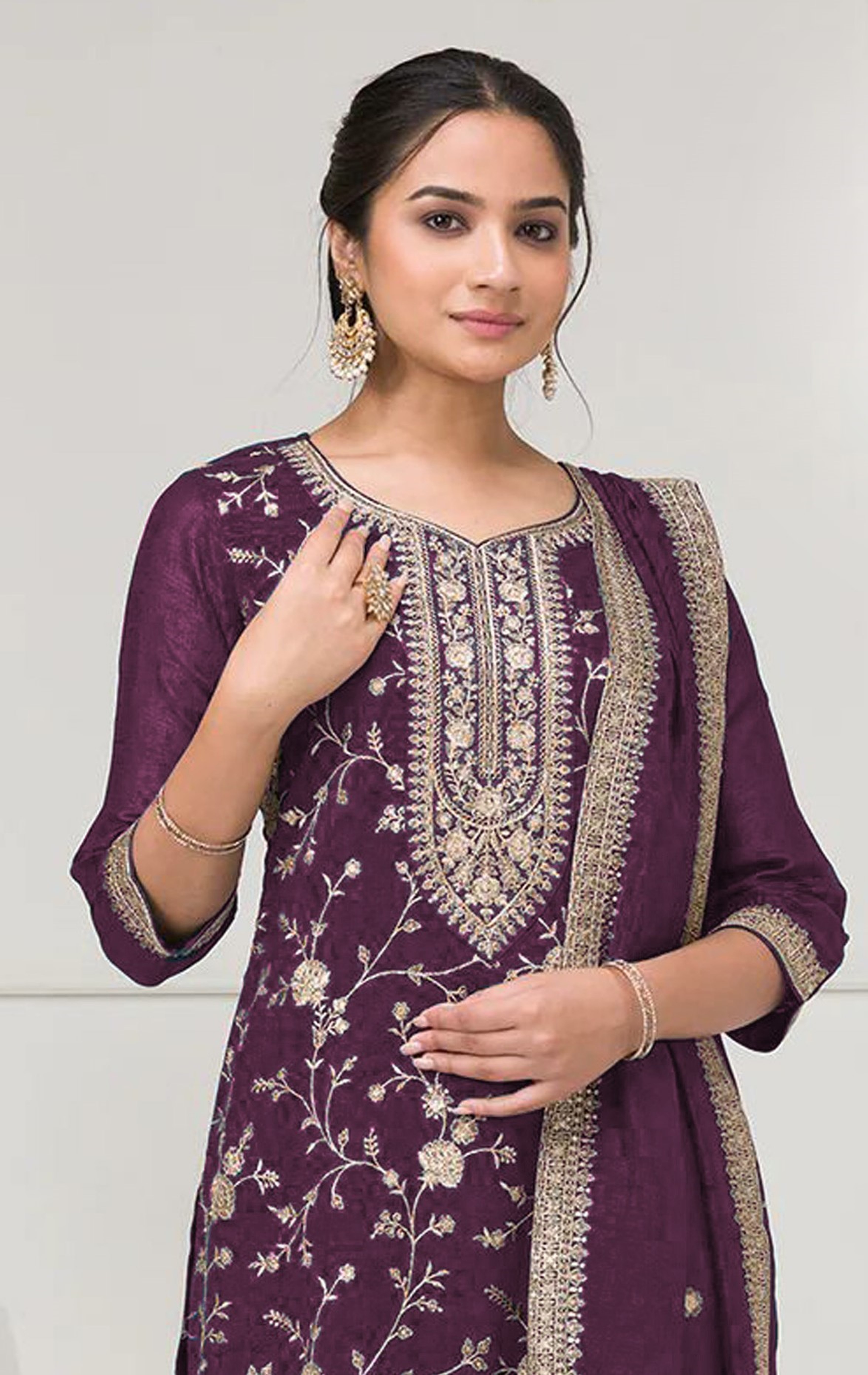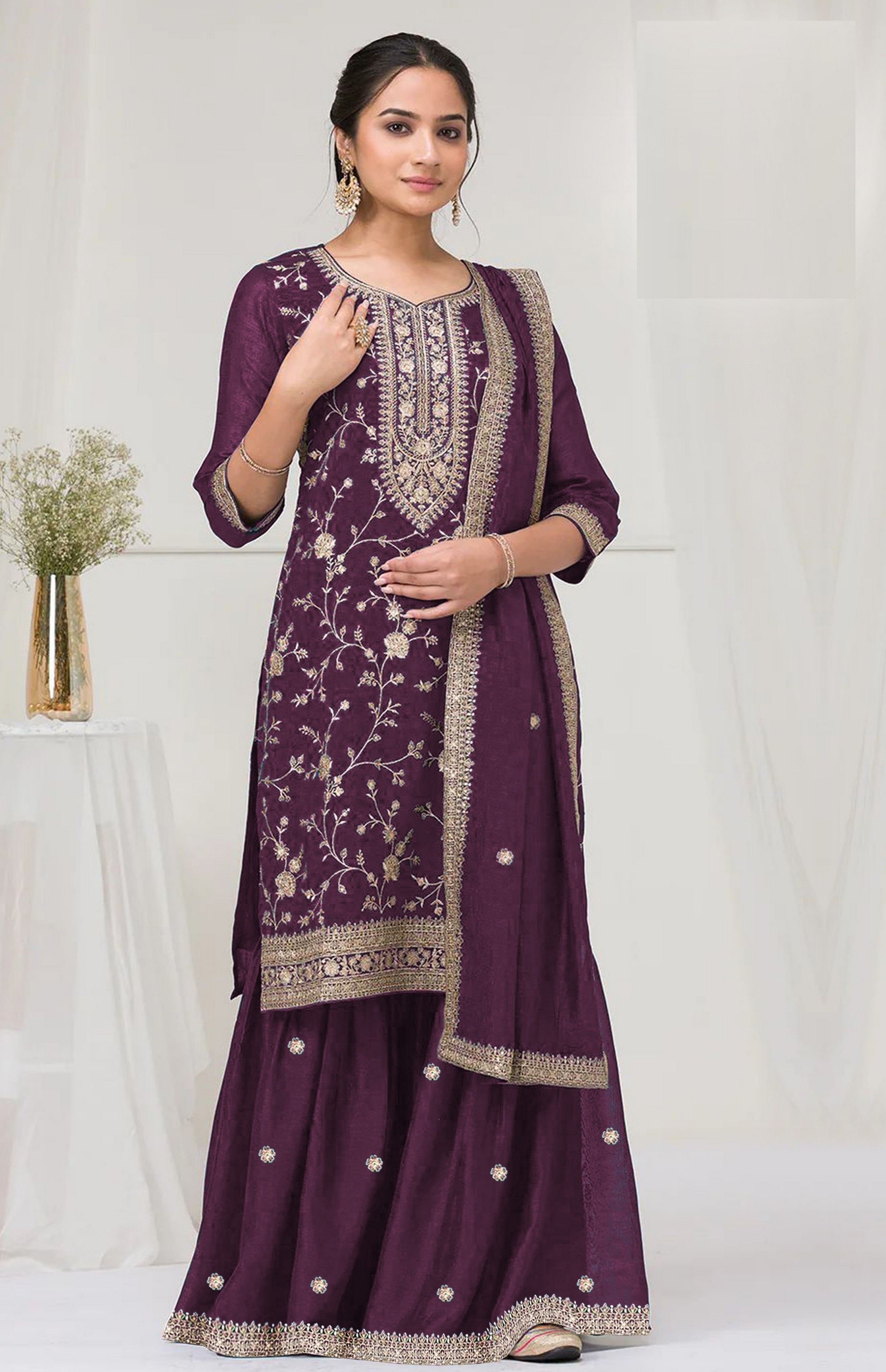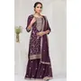 Purple Color Vichitra Silk Fabric Designer Embroidery Work Palazzo Dress