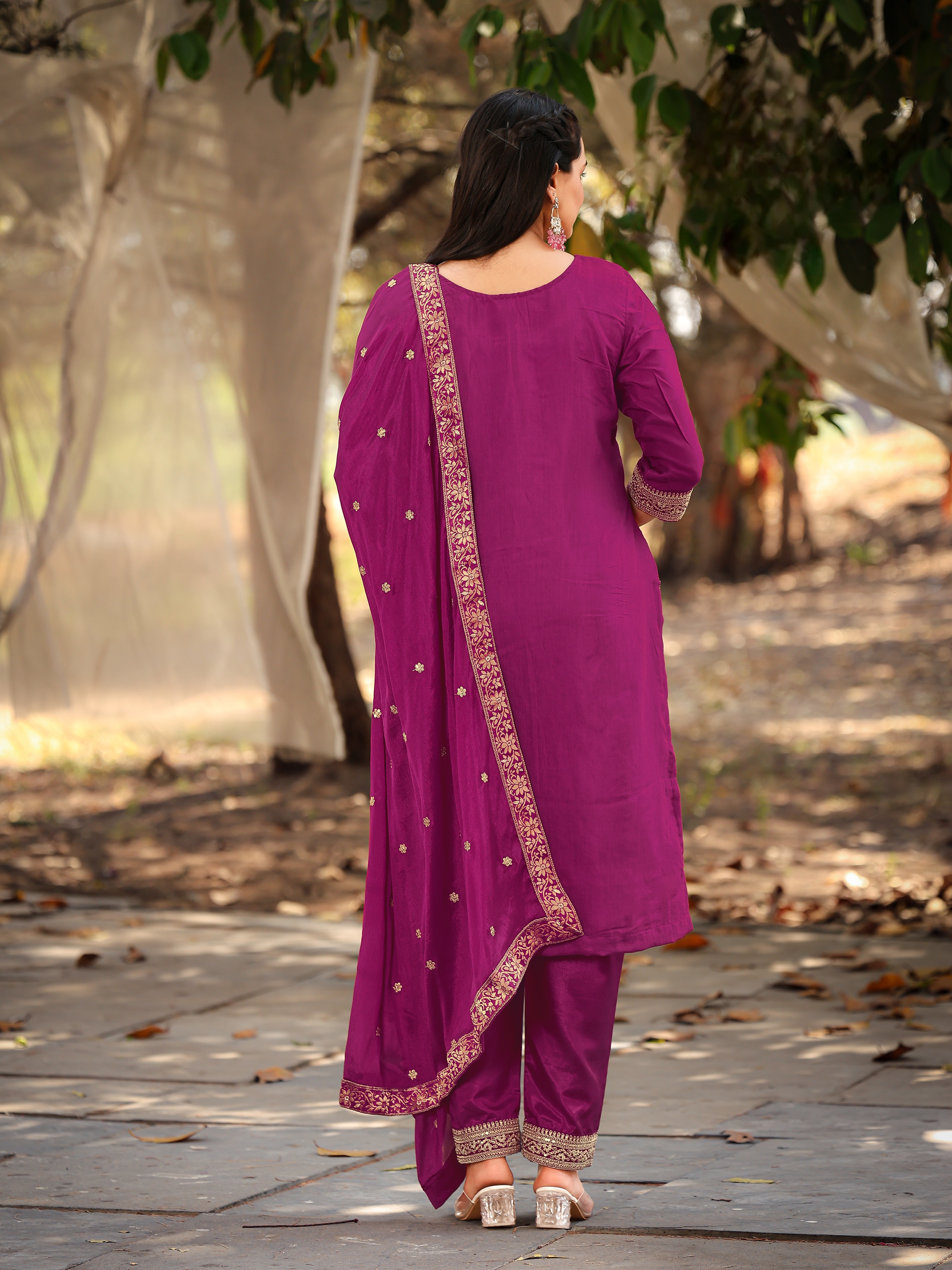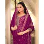 Purple Color Viscose Jacquard Woven Designer Embroidered Heavy Partywear Suit