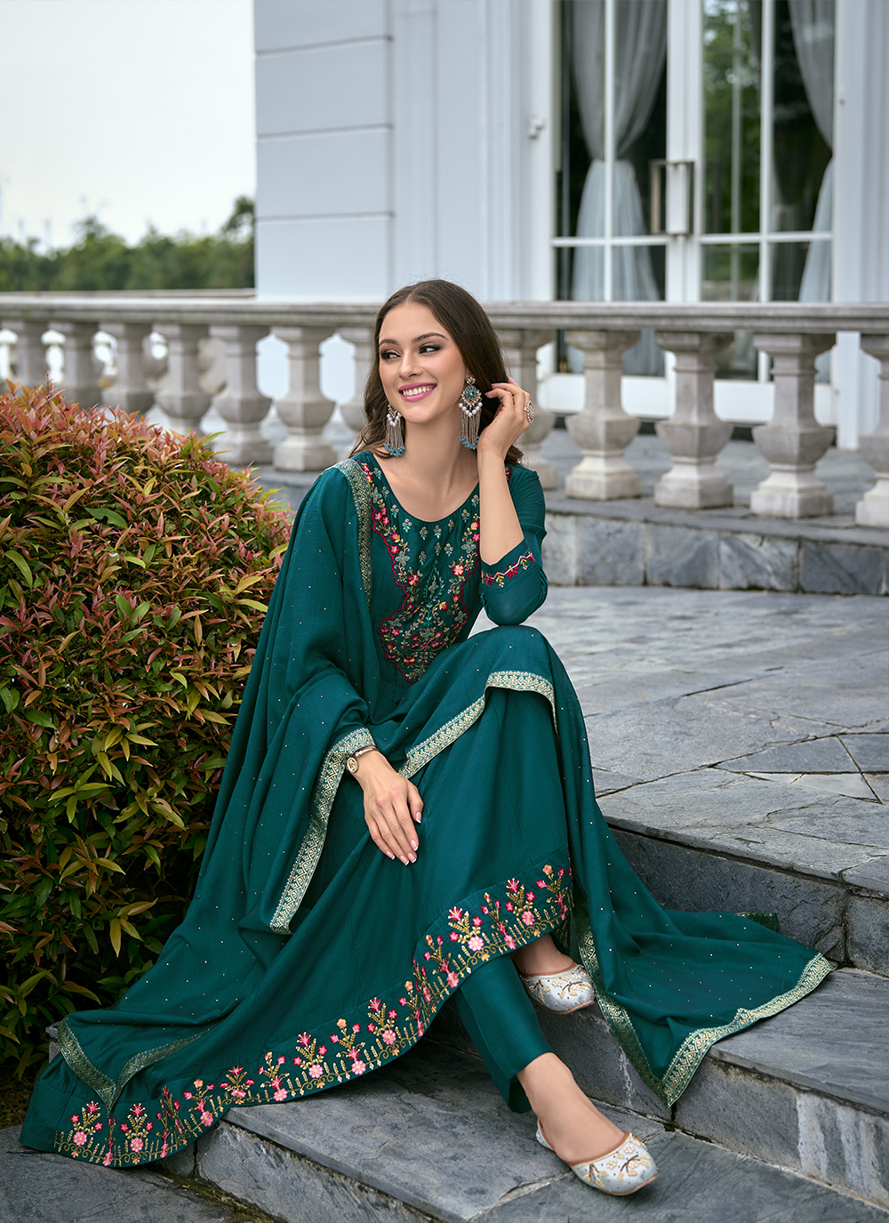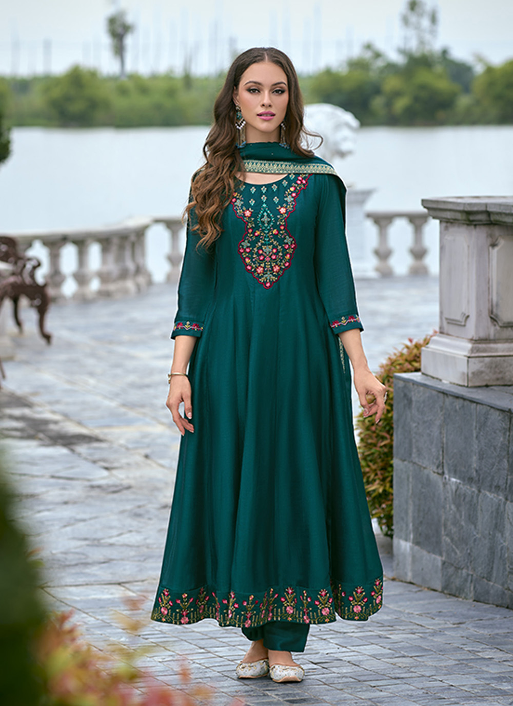 Attractive These Beautiful Looking Readymade Suits.These Top Are Vichitra Silk And Bottom Are Vichitra Silk And Dupatta Are Vichitra Silk Fabricated.Its Beautified With Designer Embroidery,Hand,Diamond Work.