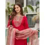 Red Color Smart And Festive Readymade Rayon Slub Fabic Kurta Set