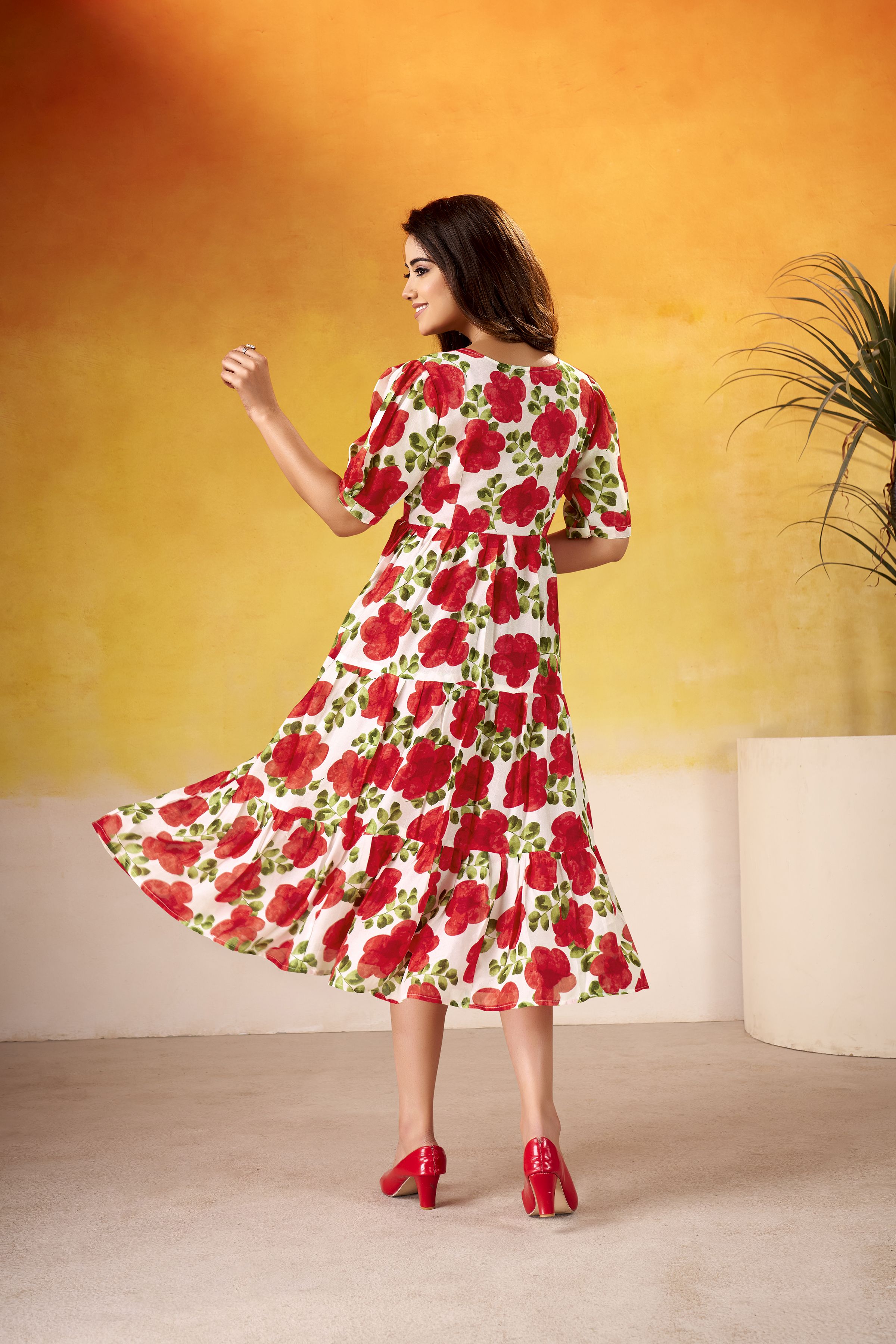 Red Color Vichitra Silk Fabric Designer Floral Printed Girlie Partywear Kurti
