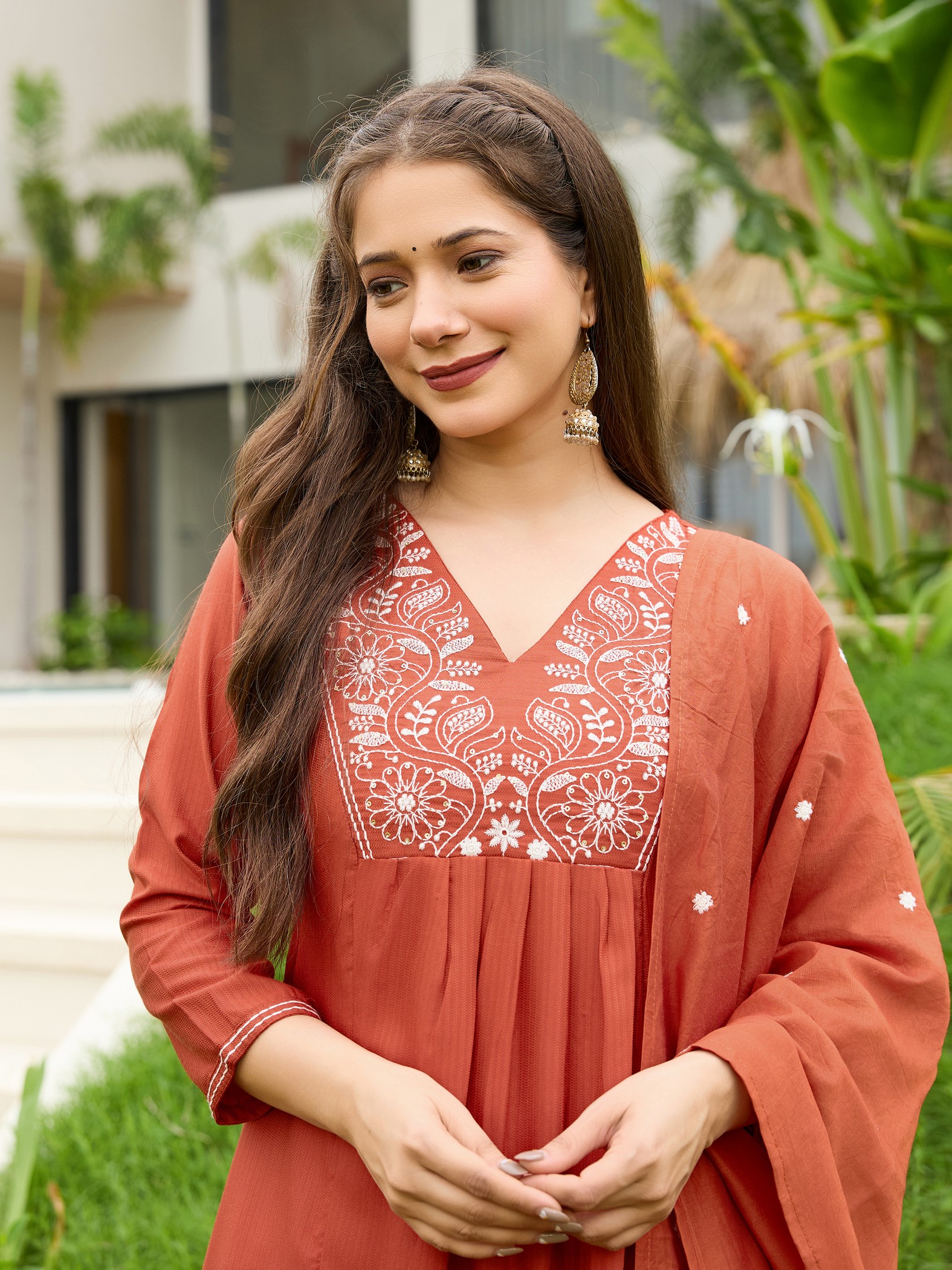 Rust Color Viscose Blend Fabric Designer Embroidered Fancy Kurta Set