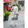 Sea Green Color Linen Fabric Digital Printed Ethnic Readymade Suit For Trendy Looks