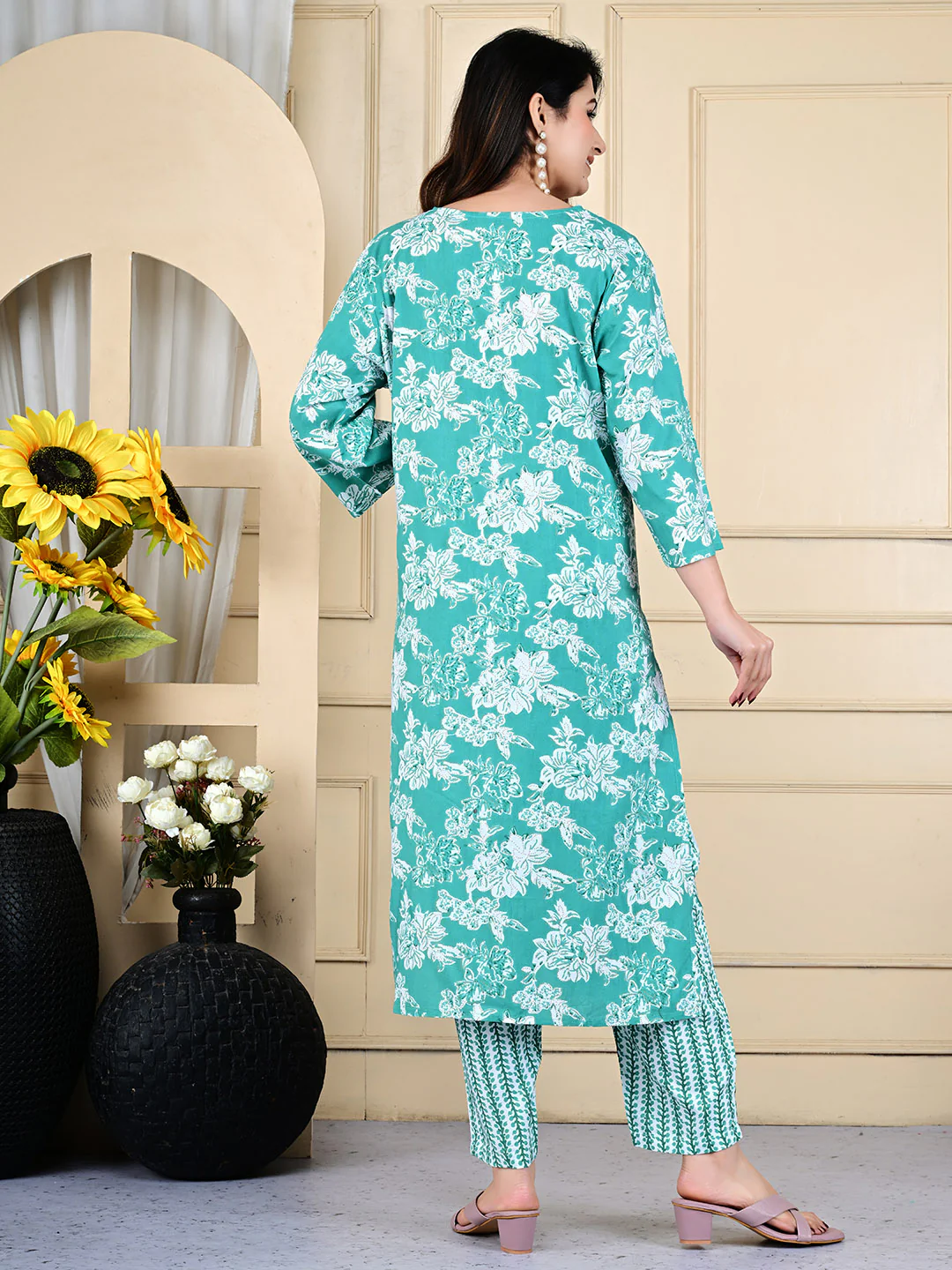 Sea Green Color Rayon Fabric Beautiful Printed Casual Co-ord Set