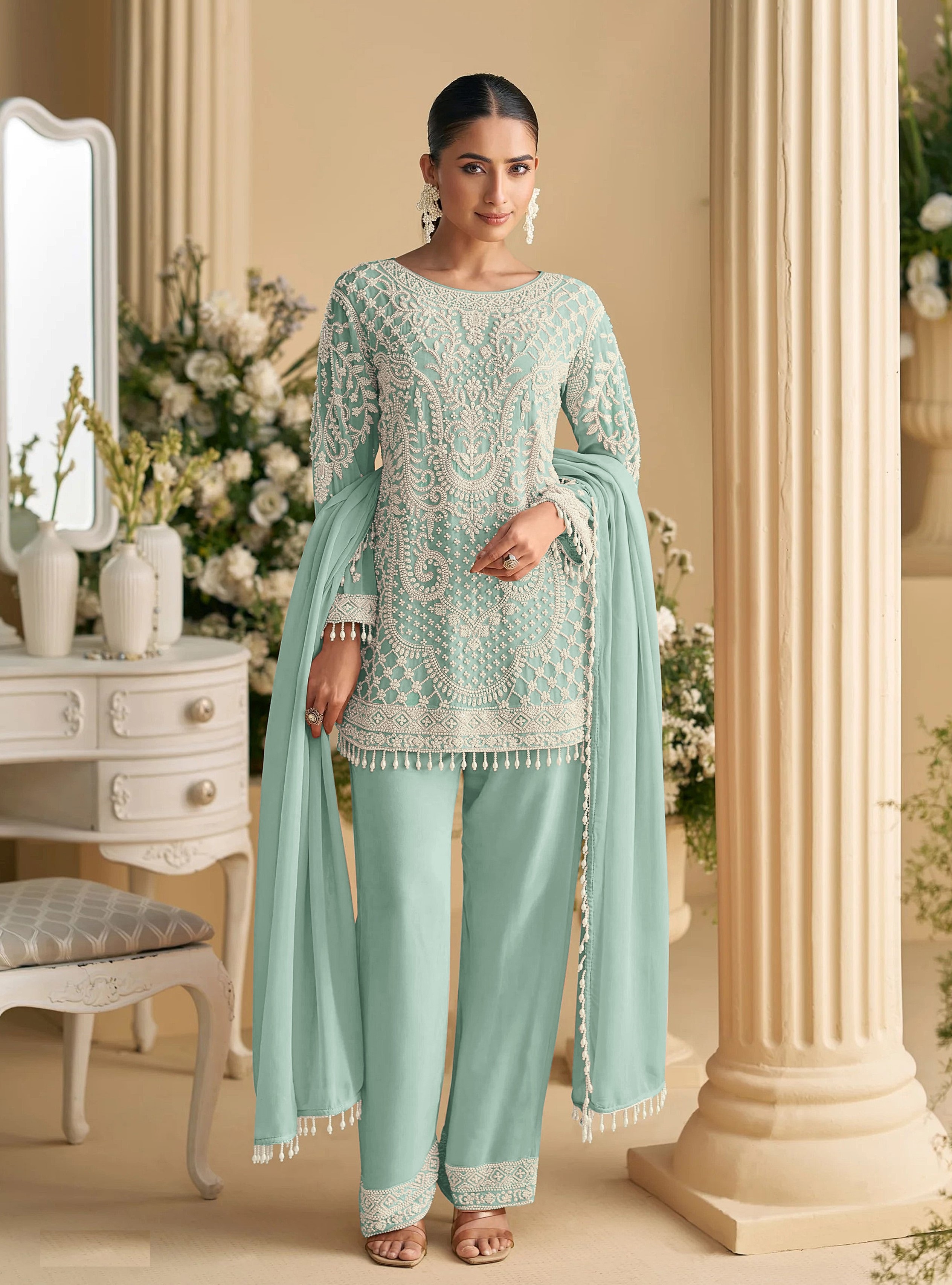 Sea Green Color Rich Sophisticated Looks Ethnic Ceremonial Suit
