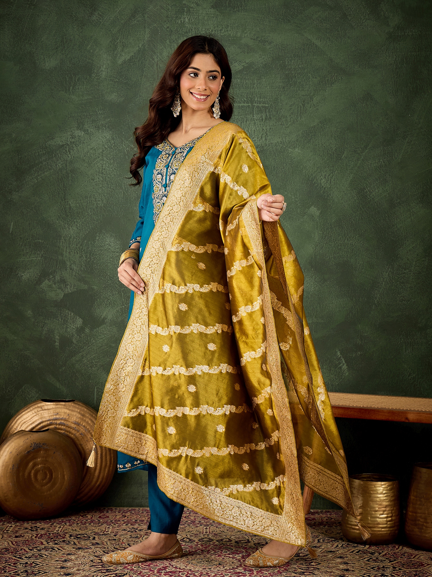 Teal Blue Color Smart Viscose Rayon Fabric Designer Embroidery Work Ceremonial Kurta Set