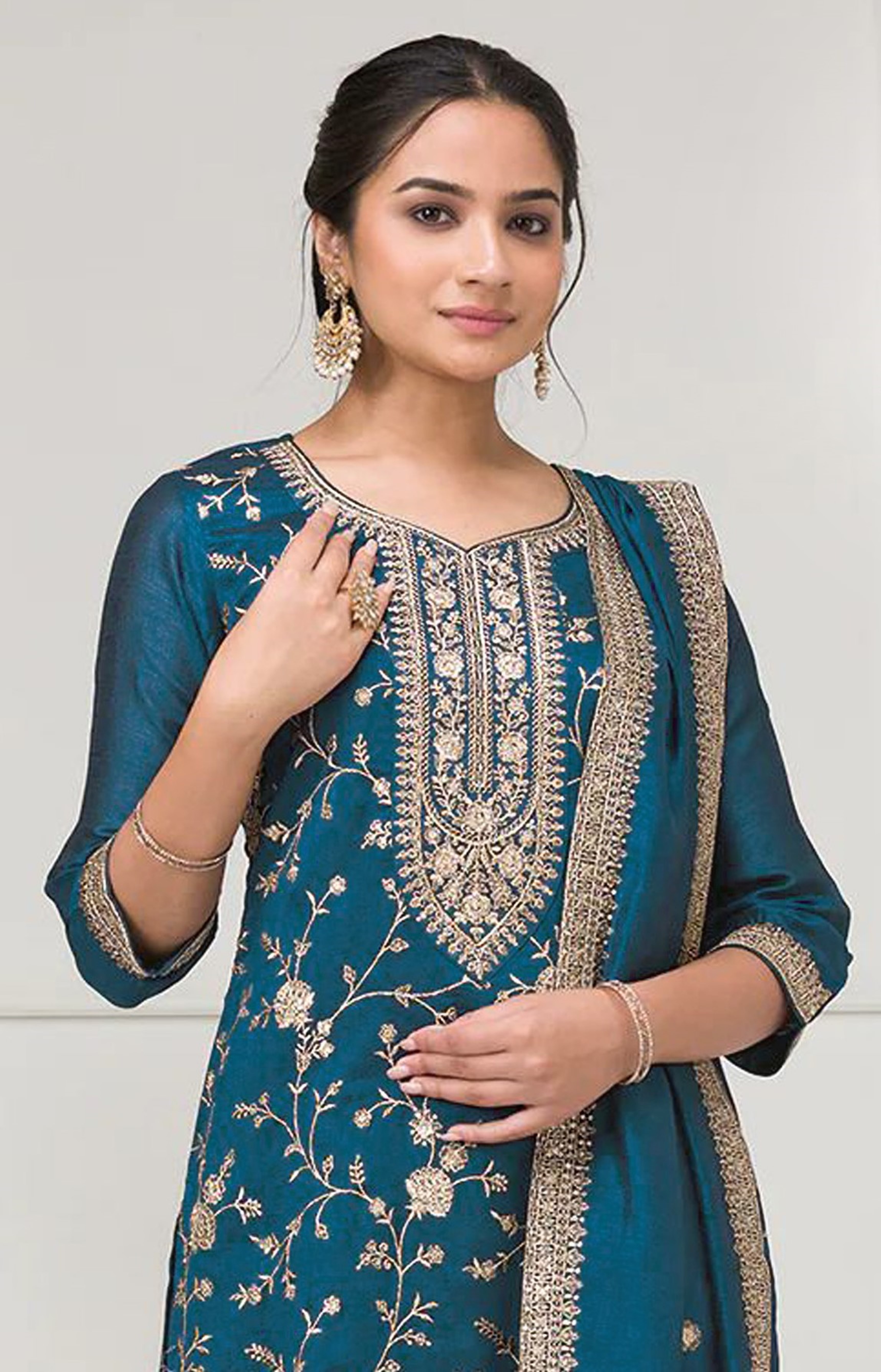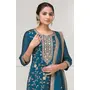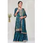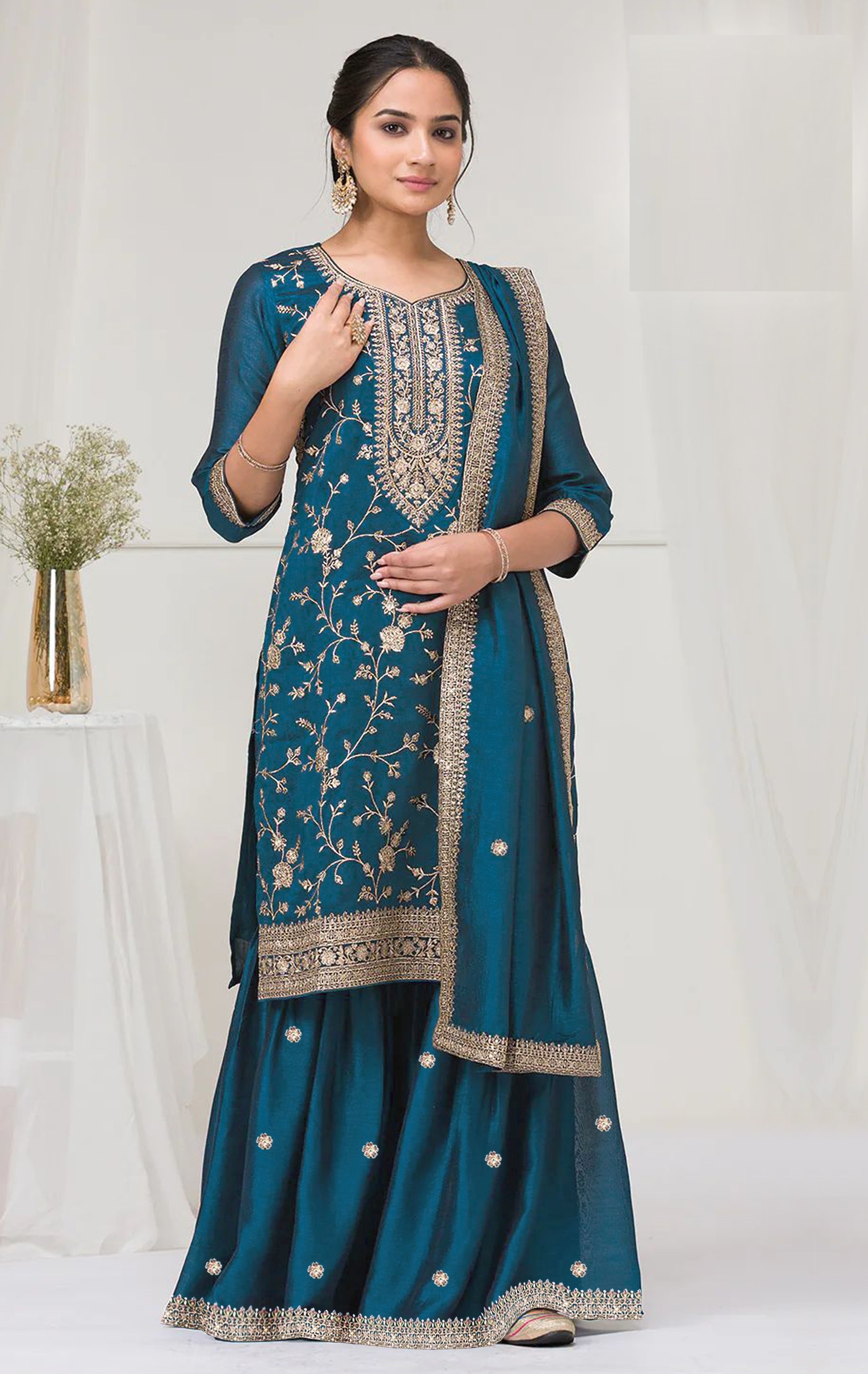 Teal Blue Color Vichitra Silk Fabric Designer Embroidery Work Palazzo Dress