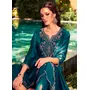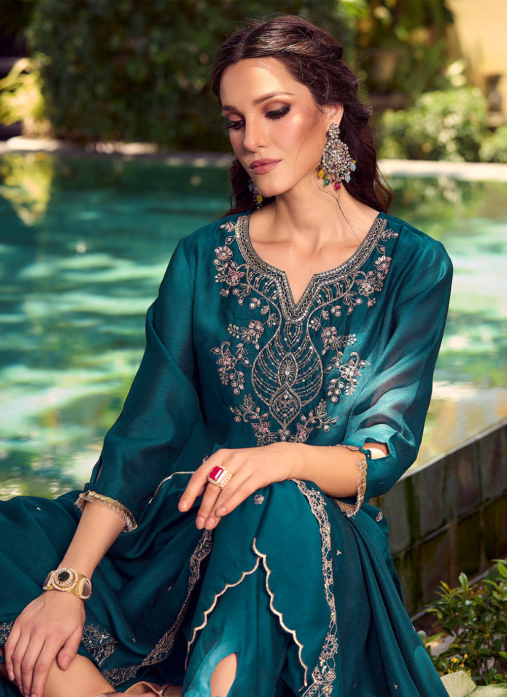 Teal Color Beautiful Ceremonial Shimmer Silk Fabric Embroidered Girls Suit