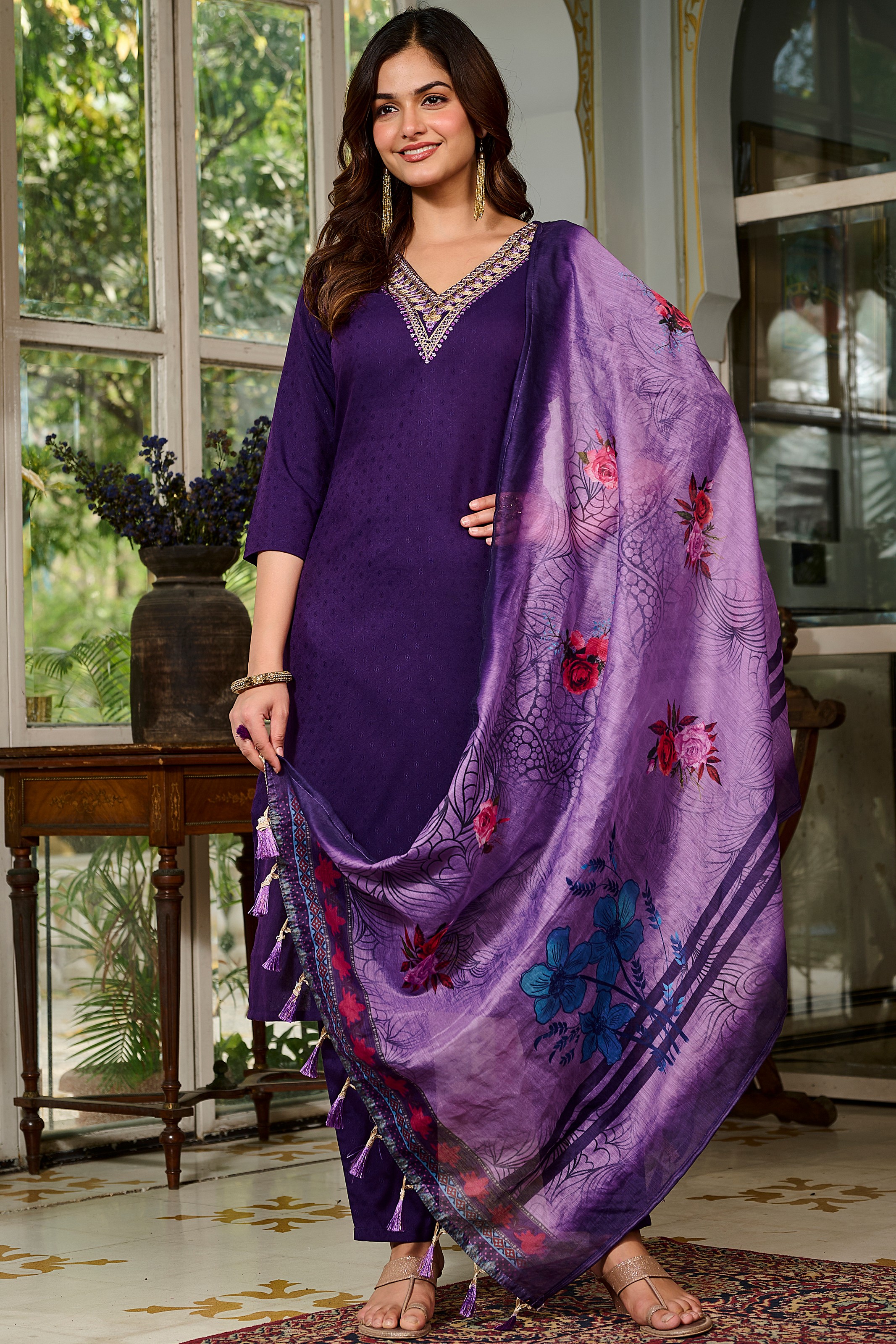 Violet Color Smart And Festive Readymade Viscose Rayon Fabic Kurta Set