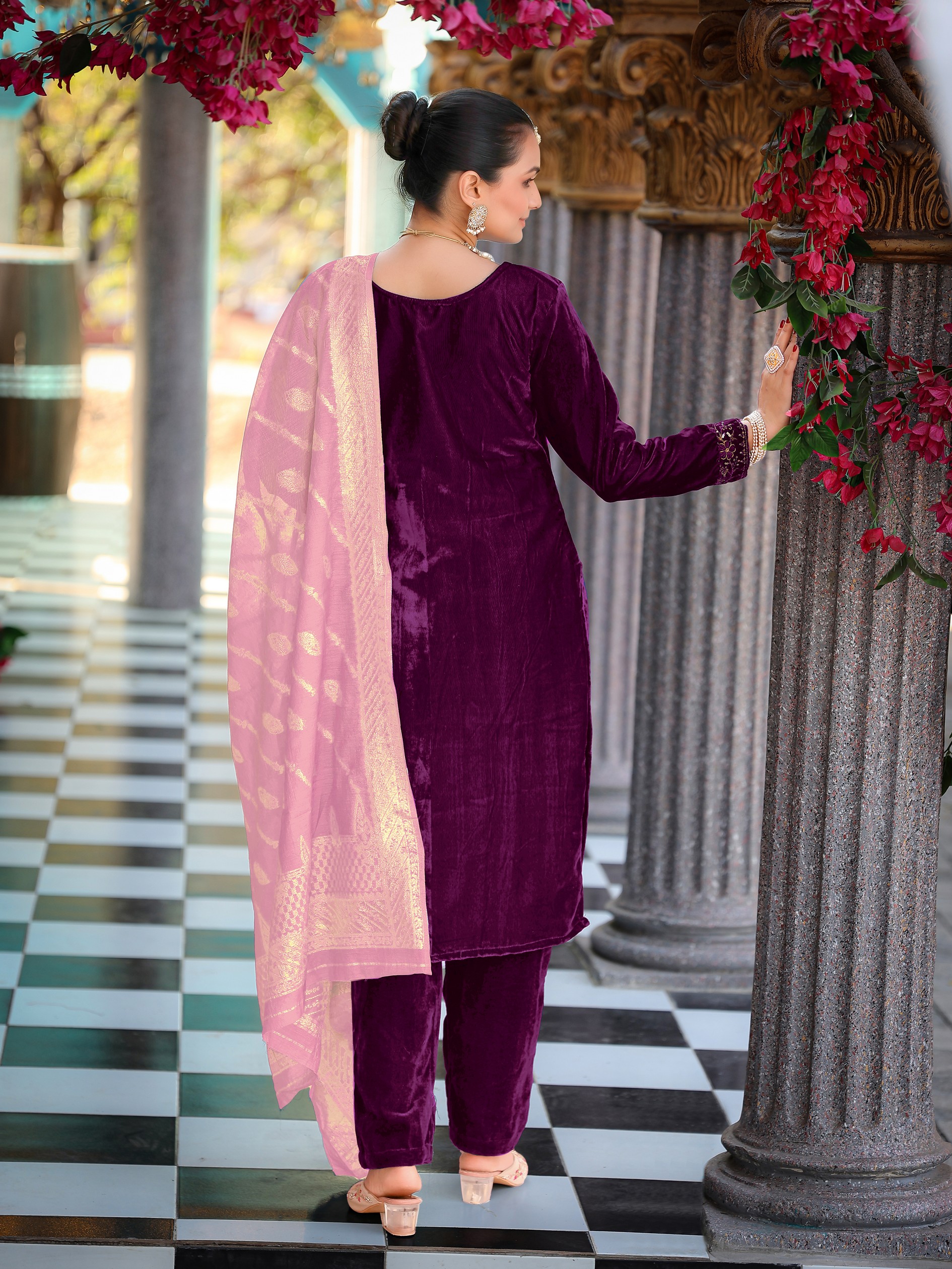 Wine Color Velvet Fabric Heavy Wedding Ceremonial Salwar Kameez