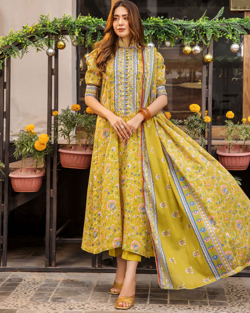 • This set includes: Kurta And Pant And Dupatta || Neck Style: V Neck.