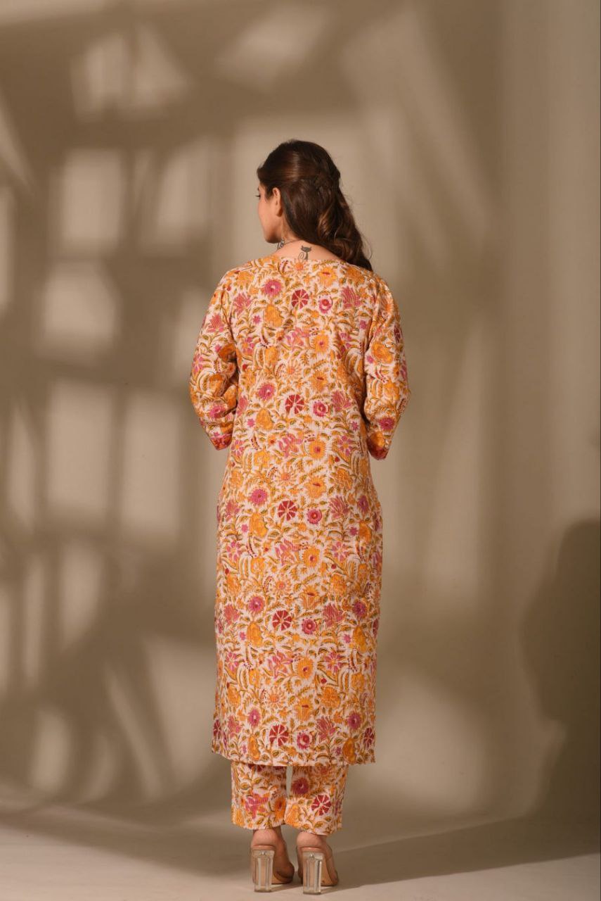 Customer Will Get 1 Kurti and Pant Set Which Made from Rayon Fabric, Kurti has 3/4 Sleeves and V Neck. There Is Multiple Design Print Which Gives Amazing Look To This Kurta Set. This Kurta Set Is Perfect Match for Party Wear, Wedding Wear, Festival Wear, and Traditional Wear.