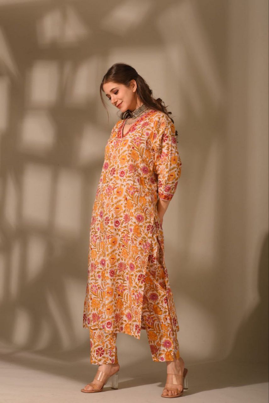 • Kurta Set Fabric: Rayon || Kurta Set Color: - Orange.