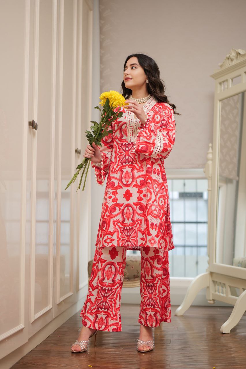 Customer Will Get 1 Kurti and Pant Set Which Made from Rayon Fabric, Kurti has Full Sleeves and V Neck. There Is Multiple Design Print Which Gives Amazing Look To This Kurta Set. This Kurta Set Is Perfect Match for Party Wear, Wedding Wear, Festival Wear, and Traditional Wear.