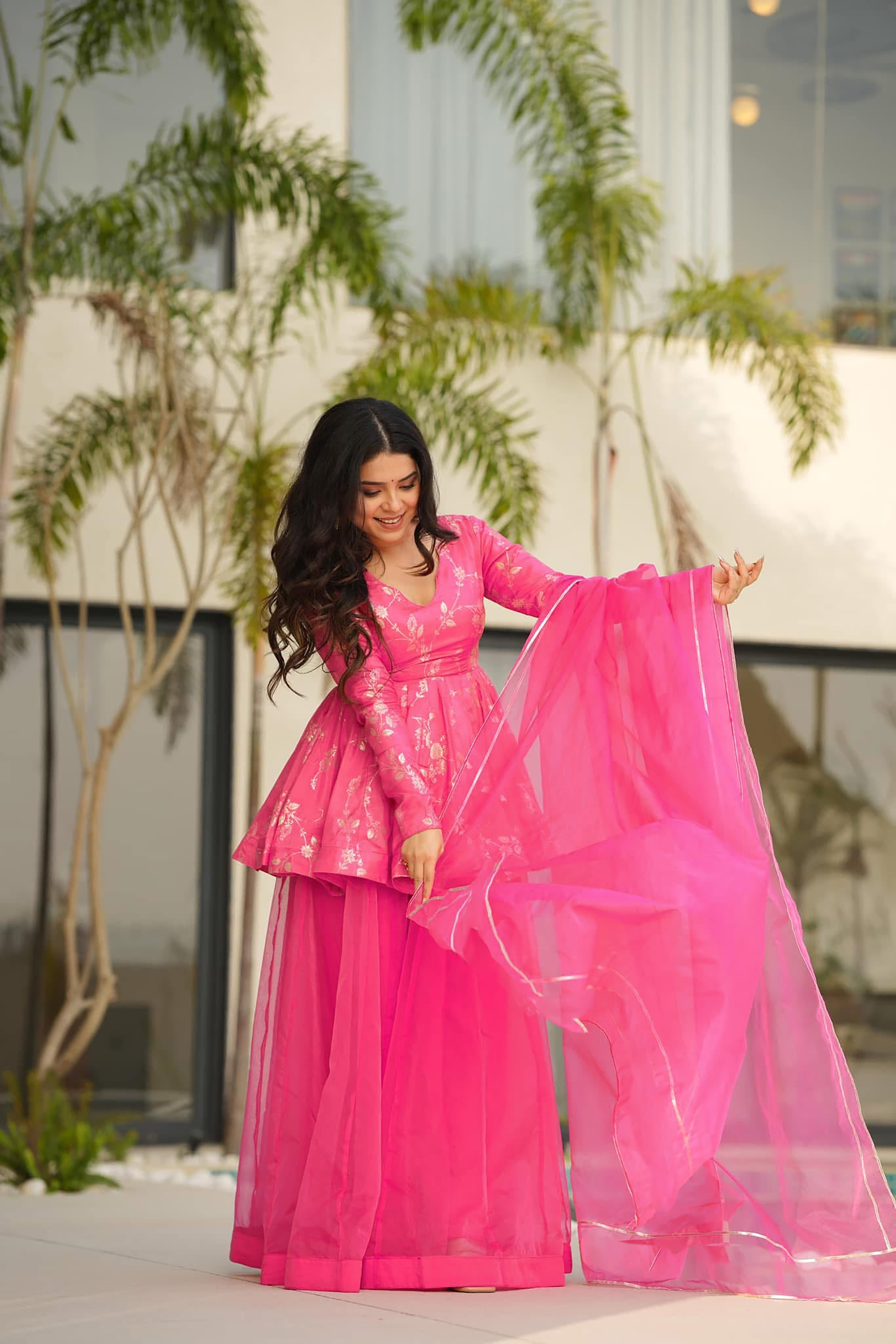 • Curated collection of women’s readymade sharara sets designed for ethnic wear