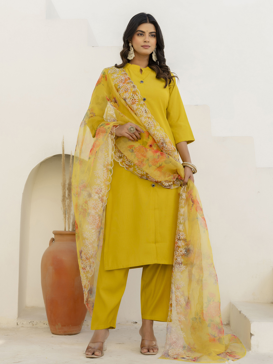 Yellow Color Shimmer Silk Fabric Designer Embroidery Work Formally Ethnic Readymade Kurta Set