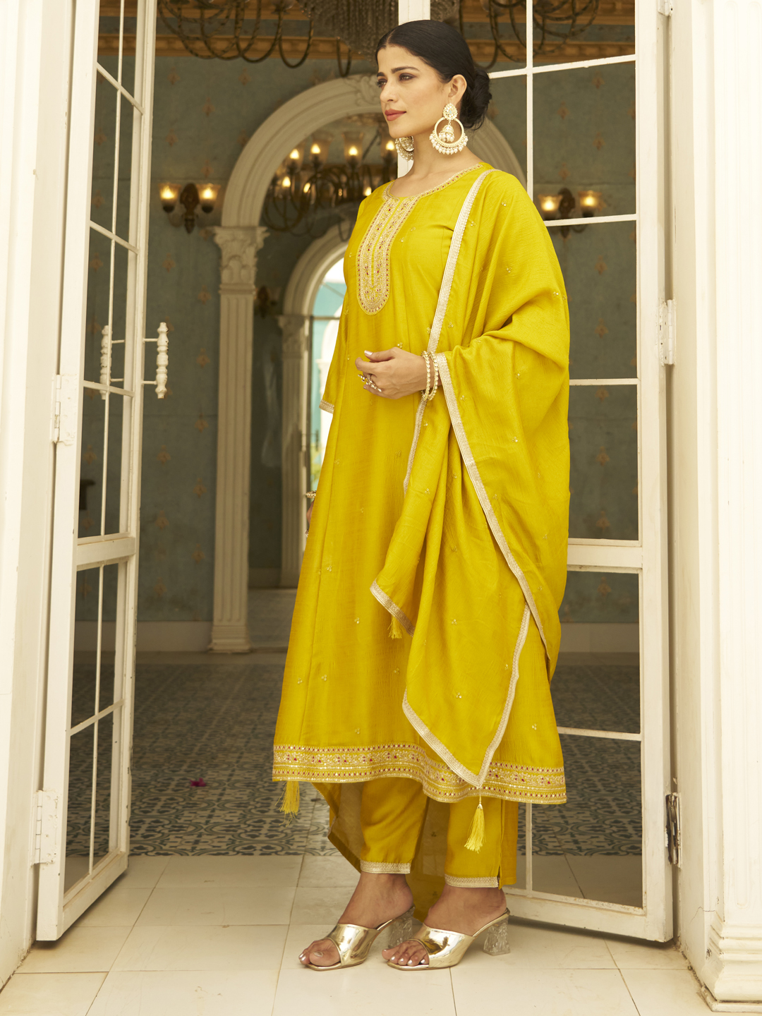 Yellow Color Silk Blend Designer Embroidery Work Heavy Looks Salwar Kameez