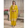 Yellow Color Viscose Chiniya Silk Fabric Ethnic Embroidered Salwar Kameez