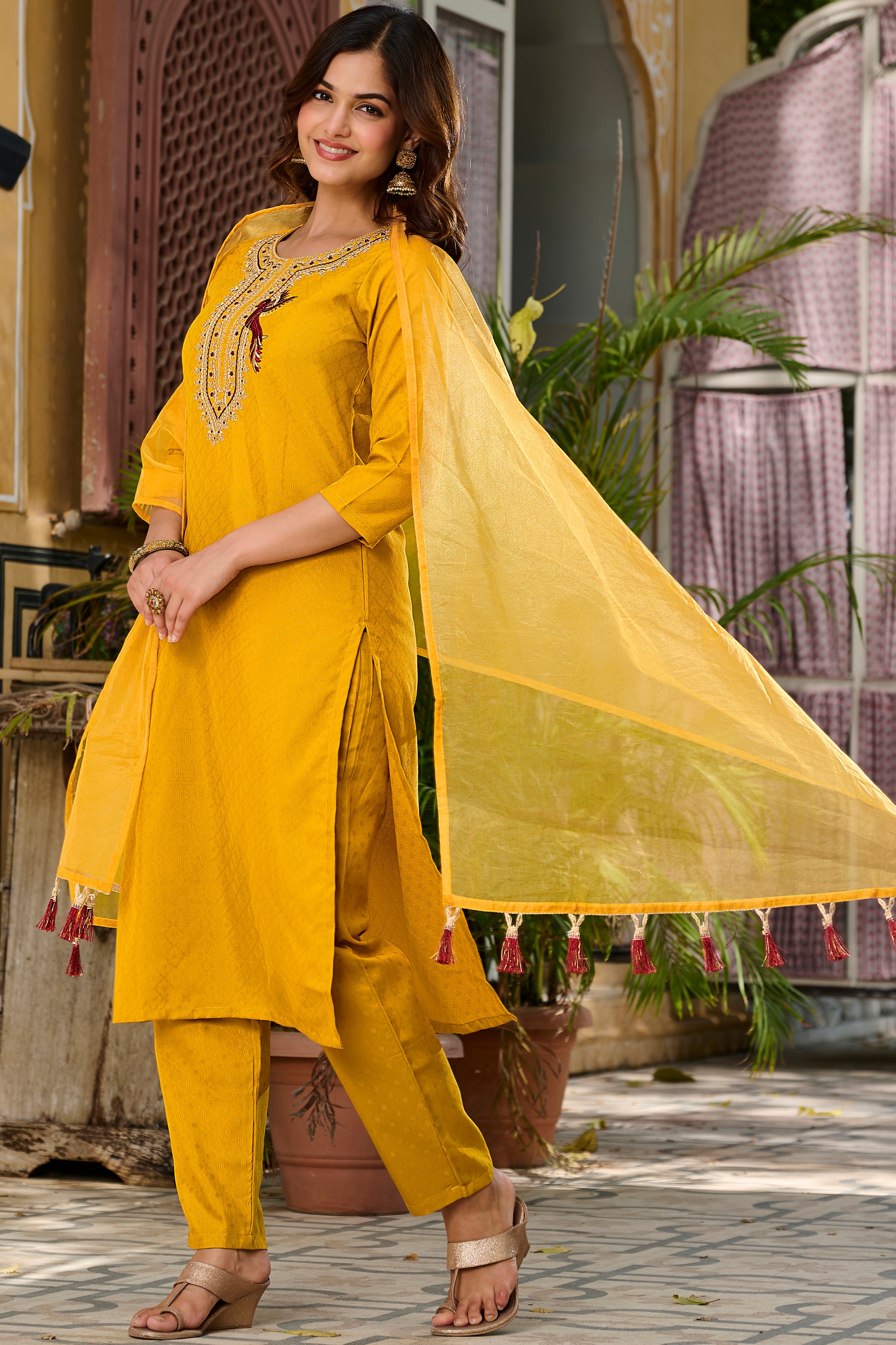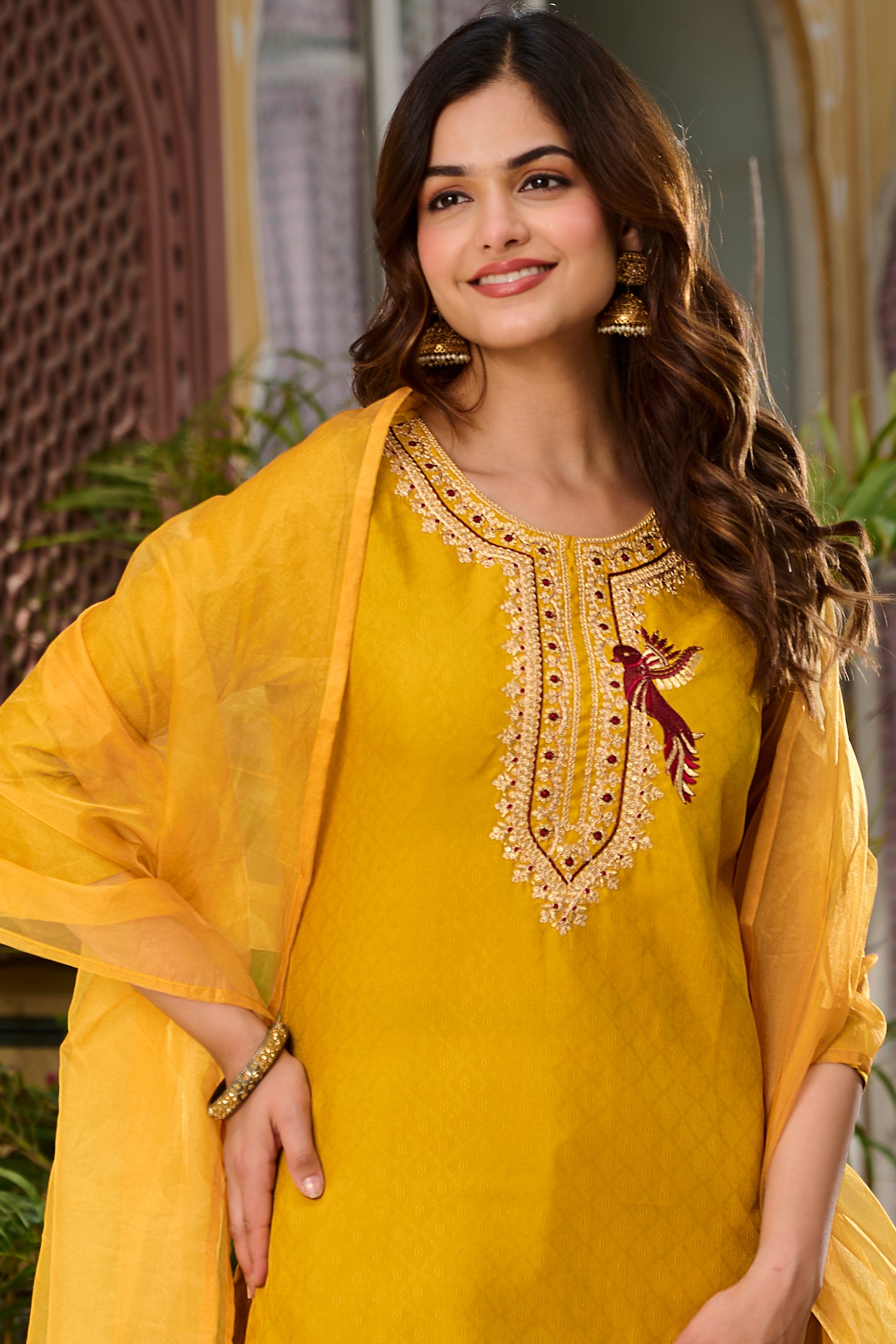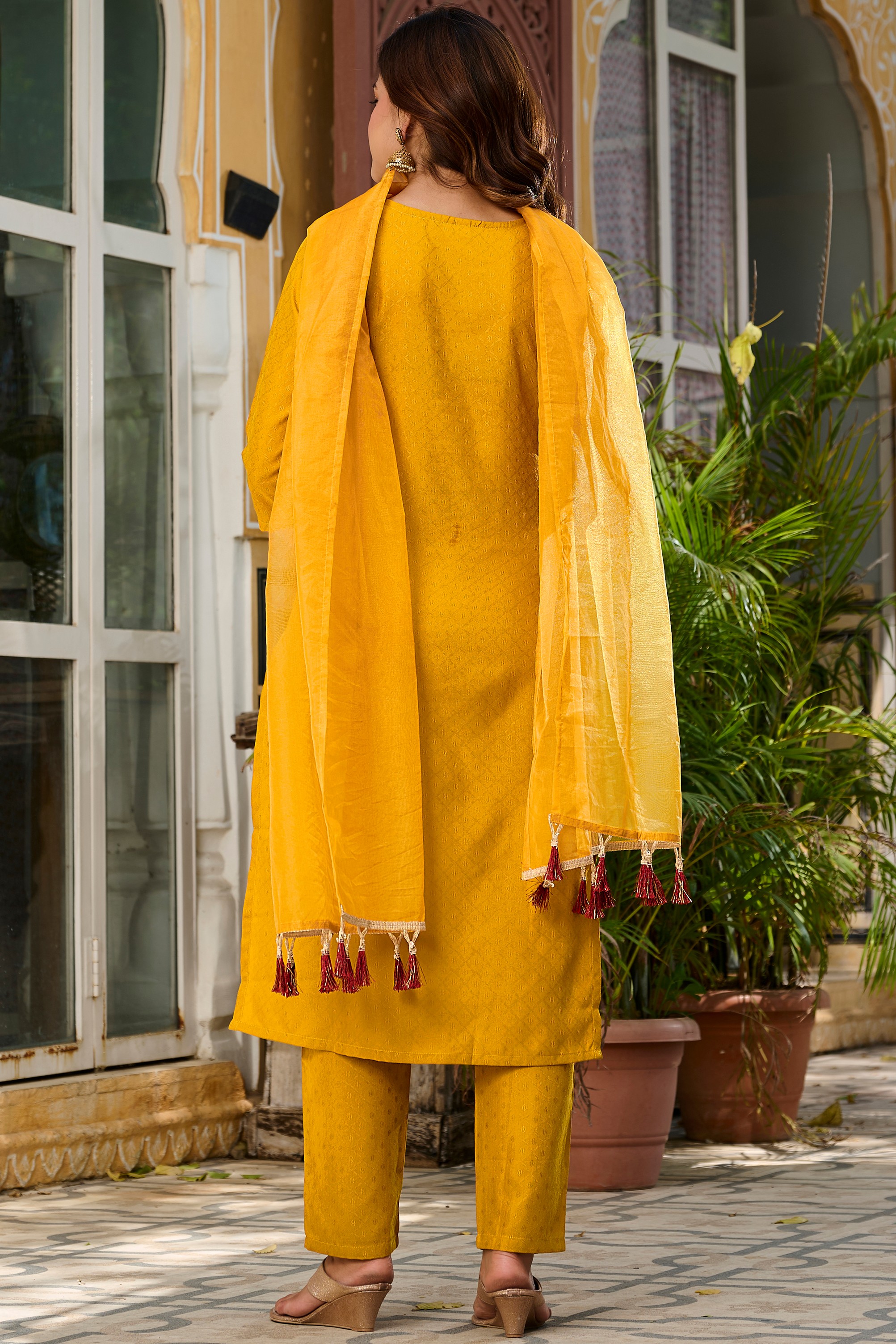 Yellow Color Viscose Rayon Fabric Sophisticated Partywear Suit