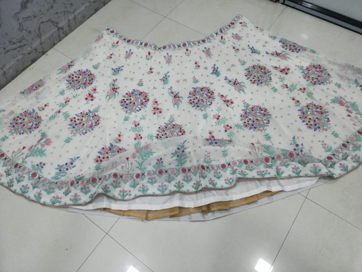 LEHENGA(BOTTOM)FABRIC:- GEORGETTEINNER:- 2 LAIR MICRO FABRICWORK:- 3MM SEQUINS WITH THREAD EMBROIDERY WORKSTITCH:- SEMI STITCHED WITH CANCAN, CANVAS AND HAND MADE TASSELSSIZE:- 42HEIGHT AND 42WAISTFLAIR:- 3.50 METER FLAIR COLOR:- CREAM FABRIC COLOR WITH MULTI THREAD COLOR EMBROIDERYCHOLI(TOP):-FABRIC:- BANGLORI SILKSIZE:- 0.80 METER FABRICWORK:- 3MM SEQUINS WITH THREAD EMBROIDERY WORK STITCH:- UN STITCHED FABRICCOLOR:- CREAM FABRIC COLOR WITH MULTI THREAD COLOR EMBROIDERYDUPATTA:-FABRIC:- GEORGETTEWORK:- 3MM SEQUINS WITH THREAD EMBROIDERY LACE BORDER WORKSIZE:- 2.25 METER DUPATTASTITCH:- FULL STITCHCOLOR:- CREAM FABRIC COLOR WITH MULTI THREAD COLOR EMBROIDERYADDITIONALWASH CARE: - DRY CLEAN ONLYCOLOR: - PRODUCT COLOR MAY SLIGHTLY VARY DUE TO PHOTOGRAPHIC LIGHTNING SOURCES OR YOUR DEVICE DISPLAY SETTINGSTHESE ARE MADE TO ORDER DESIGNER STYLES, HENCE EXPECT A SLIGHT VARIATION FROM THE IMAGE DISPLAYEDIN THE BOX 1 PIECE LEHENGA 1 PIECE DUPATTA 1 PIECE BLOUSE FABRIC (1 SET OF HAND MADE TASSELS)ALTERNATIVEHANDMADE TASSELS MAY DIFFER FROM THE PHOTOS AND VIDEOS. TASSELS WILL BE AVAILABLE AS LONG AS THE CURRENT STOCK LASTS. ALTERNATIVELY, NEW STOCK MAY TAKE SOME TIME TO ARRIVE. WE ARE NOT STRICTLY BOUND TO PROVIDE TASSELS.