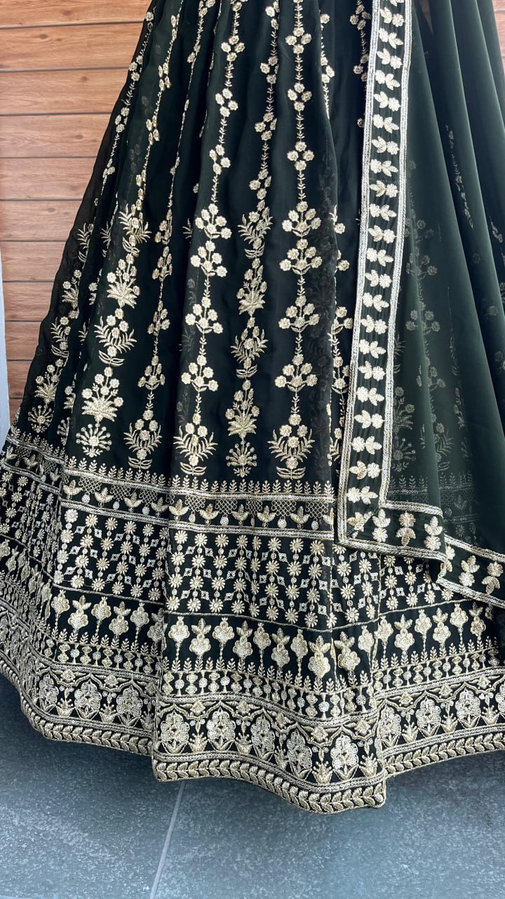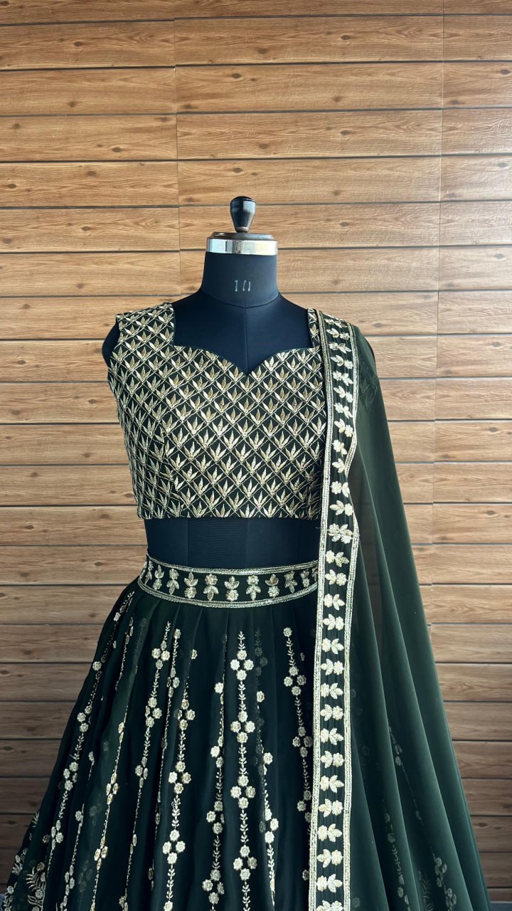 Designer Lehenga Choli Set with Dupatta Faux Georgette Fabric 3Mm Sequins With Jari Embroidery Work for Women – Green Color