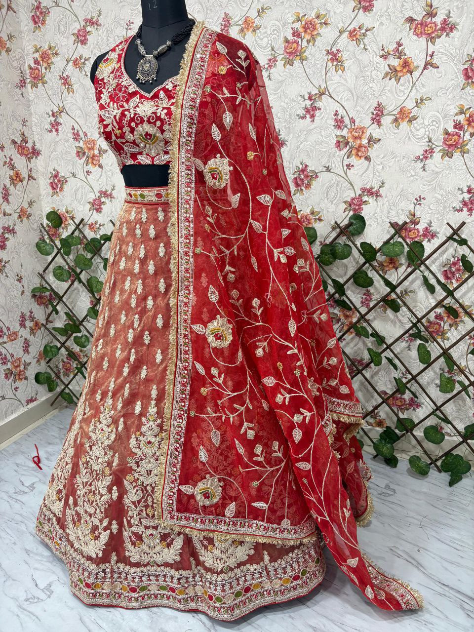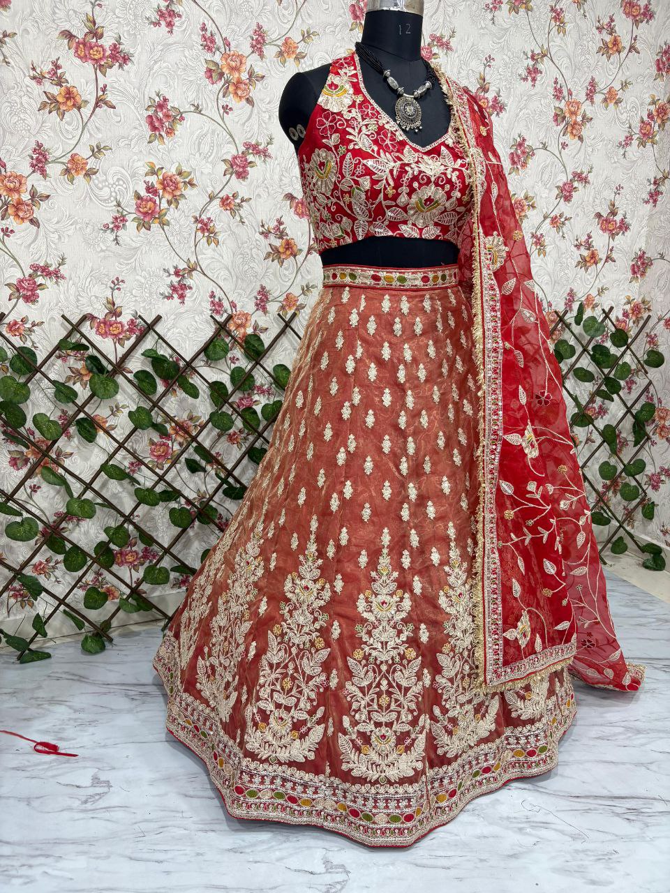 Fabric Details, Lehenga : Premium Rolex Silk Embellished With Beautiful Embroidery, Dori Work With Beautiful Heavy Sequins With Heavy Cancan And Canvas With Double Inner Covering With 3.5 Mtr Flair( Semi Stitched. ), Blouse : Premium Organza Silk Embellished With Beautiful Embroidery, Dori Work With Beautiful Sequins Work Both Side Work Front And Back( Unstitched ), Dupatta: Premium Organza Silk Embellished With Beautiful Embroidery, Dori Work With Beautiful Heavy Sequins Work( 2.5 MTR ).