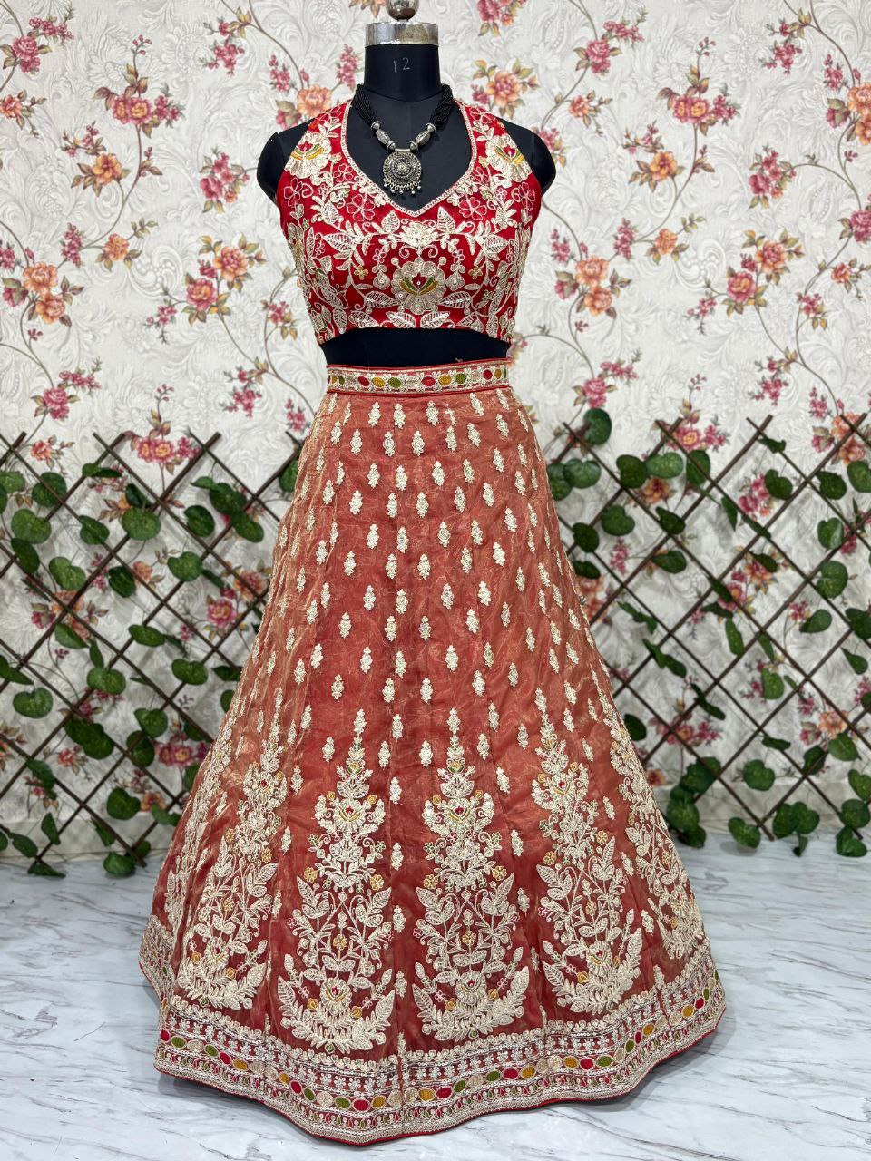 Designer Lehenga Choli Set with Dupatta Rolex Silk Fabric Beautiful Embroidery , Dori Work With Beautiful Heavy Sequins for Women – Orange Color