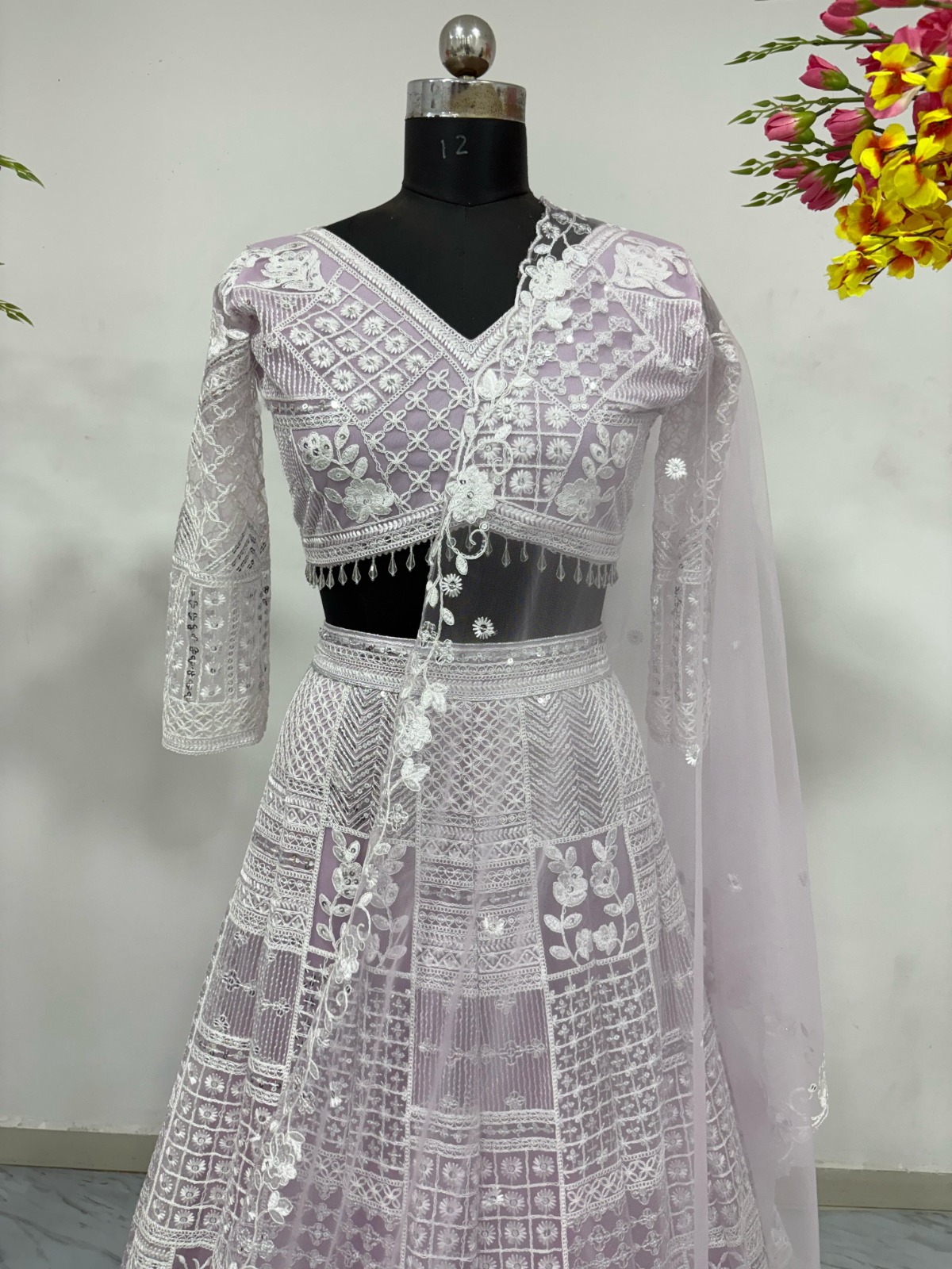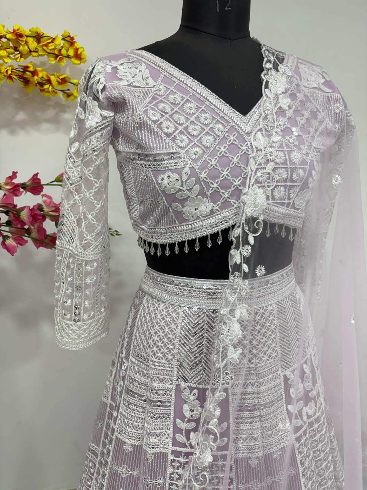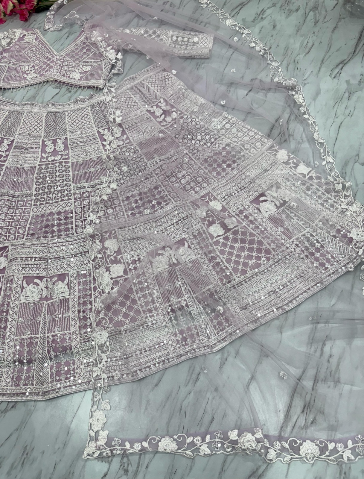 Fabric Details, Lehenga : Premium Soft Butterfly Net Lehenga Embellished With Beautiful Resham Embroidery Work, And Heavy Sequins Work With Heavy Cancan And Canvas With Double Inner Covering With Flair 3.5 MTR( Semi Stitched Upto Xxl ), With Heavy Cancan And Canvas With Double Inner Covering, Blouse : Premium Soft Butterfly Net Embellished With Beautiful Resham Embroidery Work And Heavy Sequins Work, Both Side Work Front And Back With Sleeves Work With Pearl Lace( Unstitched Fabric ), Dupatta : Premium Soft Butterfly Net Embellished With Resham Embroidery Work With Heavy Sequins Work( 2.5 MTR ), Size Details, Lehenga : Semi Stitched Upto Xxl, Blouse : Unstiched.