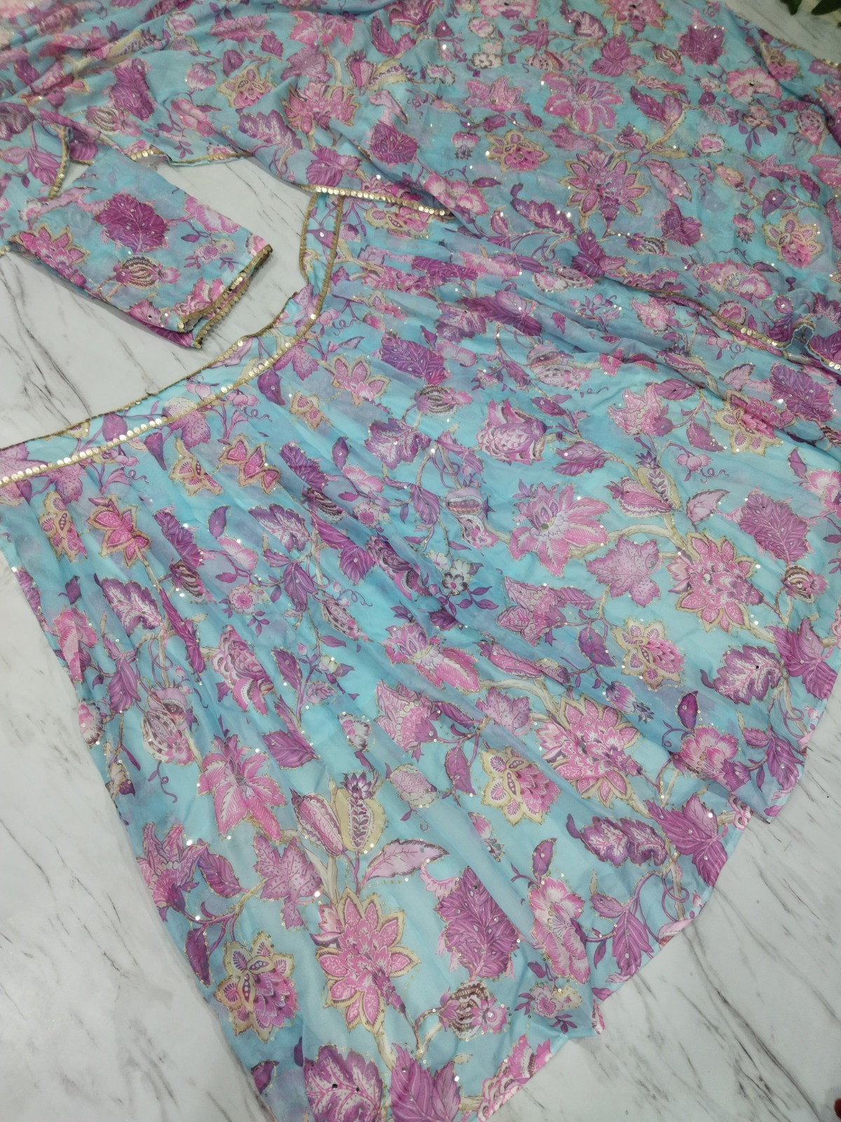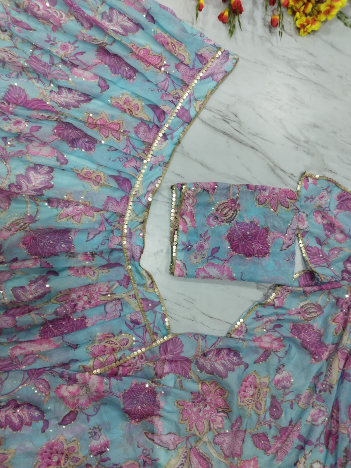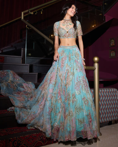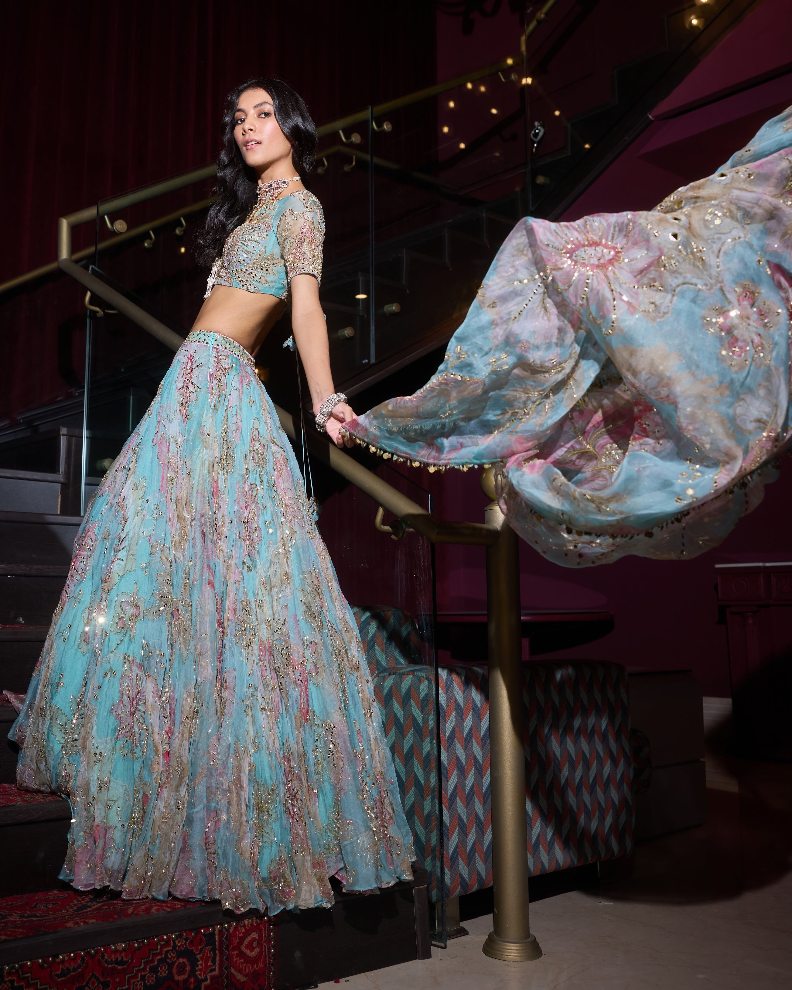 Designer Lehenga Choli Set with Dupatta Taby Silk Fabric Sequance Handwork And Real Mirror Work for Women – Sky Color