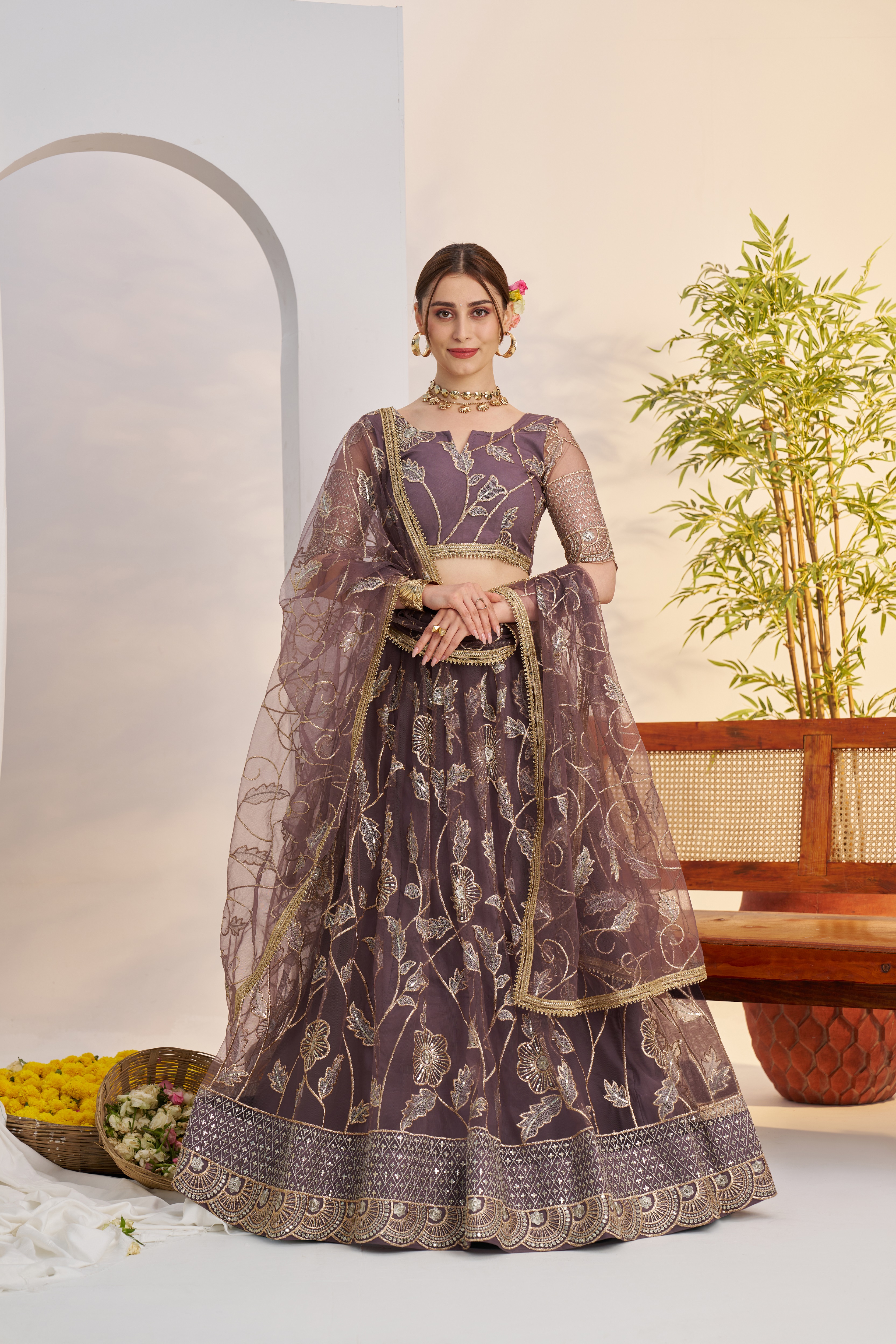 Designer Wedding Lehenga Choli Set with Dupatta for Women Darkonion Color