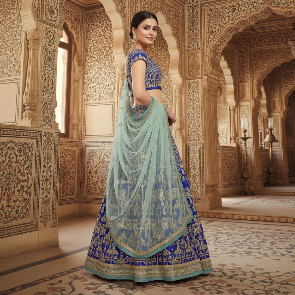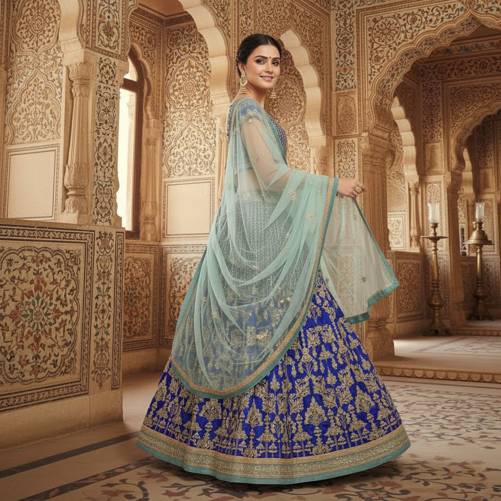 LEHENGA(BOTTOM)FABRIC:- TWO TONE TAFETA SATIN SILKINNER:- MICRO FABRIC WITH CANCAN AND CANVASWORK:- 3MM SEQUINS, CODING DORI AND JARI EMBROIDERY WORKSTITCH:- SEMI STITCHEDSIZE:- 42HEIGHT AND 42WAISTFLAIR:- 3.50 METER FLAIRCHOLI(TOP) :-FABRIC:- TWO TONE TAFETA SATIN SILKSIZE:- 0.80 METER WORK:- 3MM SEQUINS, CODING DORI AND JARI EMBROIDERY WORKSTITCH:- UN STITCHED DUPATTA :-FABRIC:- SOFT NETWORK:- 3MM SEQUINS AND JARI EMBROIDERY LACE BORDER WORKSIZE:- 2.25 METER DUPATTASTITCH:- FULL STITCHEDADDITIONALWASH CARE: - DRY CLEAN ONLYCOLOR: - PRODUCT COLOR MAY SLIGHTLY VARY DUE TO PHOTOGRAPHIC LIGHTNING SOURCES OR YOUR DEVICE DISPLAY SETTINGSTHESE ARE MADE TO ORDER DESIGNER STYLES, HENCE EXPECT A SLIGHT VARIATION FROM THE IMAGE DISPLAYEDIN THE BOX 1 PIECE LEHENGA 1 PIECE DUPATTA 1 PIECE BLOUSE FABRIC.