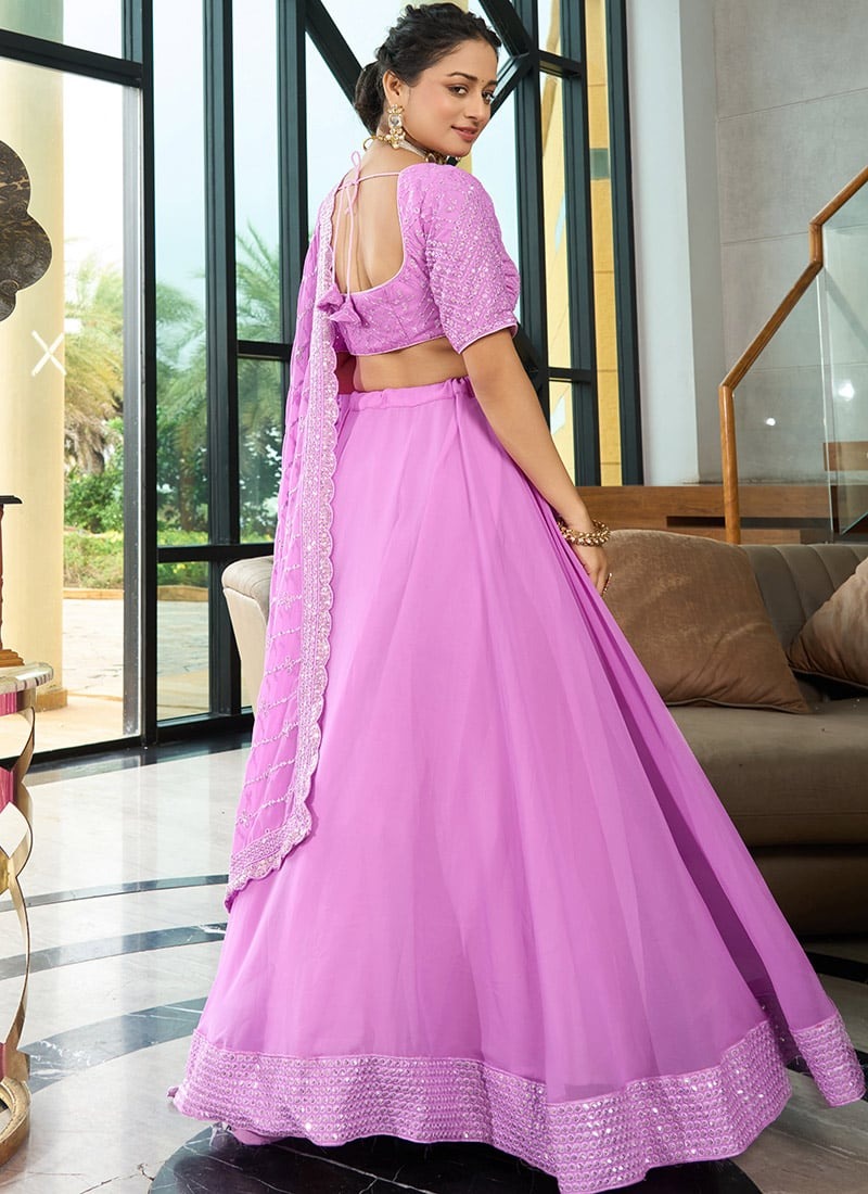 Lavender sequence with thread embroidery work faux georgette lehenga choli for wedding